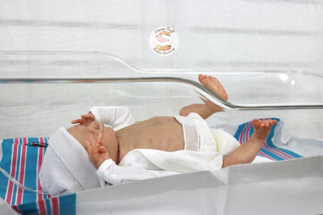 With delicate handling and extra special care, this preemie baby has been transformed into a treasured little "Cream Puff Babies Nursery" baby boy.