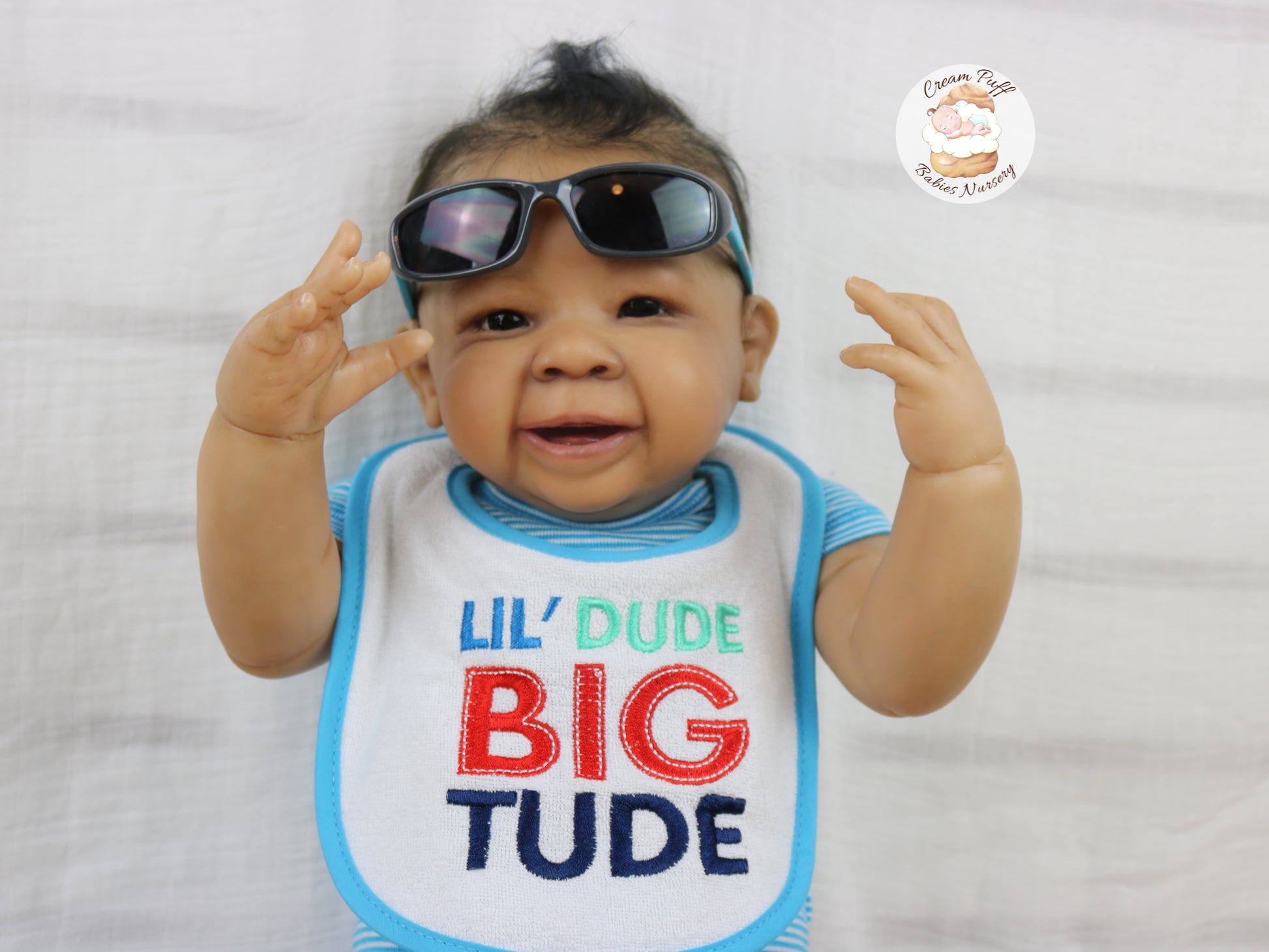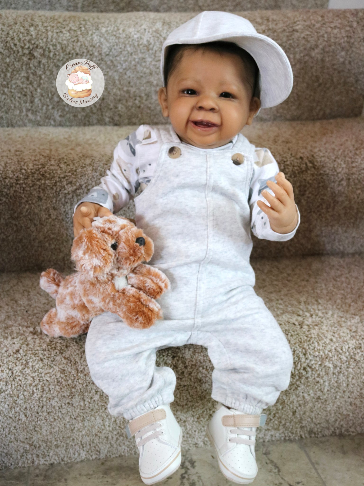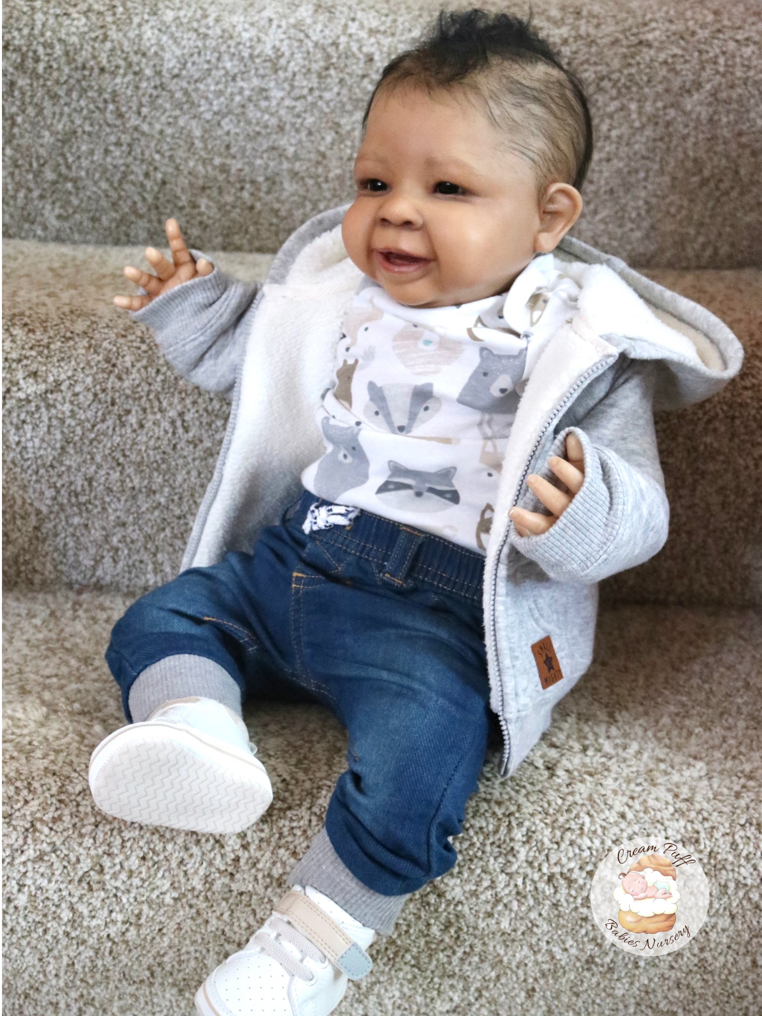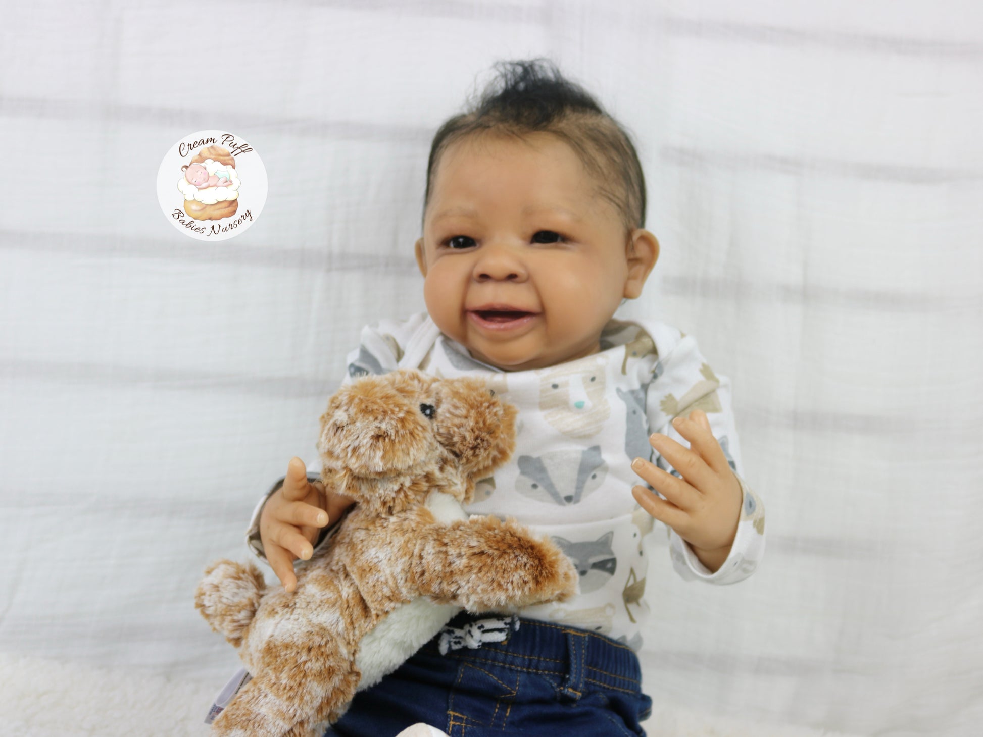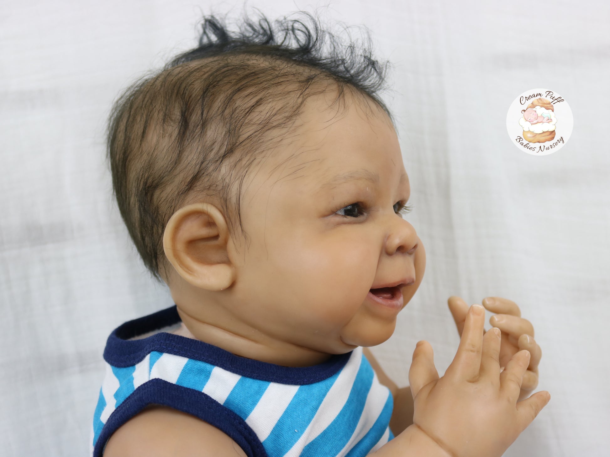 Camilo is a handcrafted, heirloom-quality collectible doll—not intended for play or young children. Perfect for collectors, reborn enthusiasts, and anyone who appreciates the warmth and comfort of these lifelike baby dolls. Props shown in photos are not included unless mentioned above. All sales are final due to the handmade nature of our work. Every baby is packed with love and great care to ensure they arrive safely at their forever home.