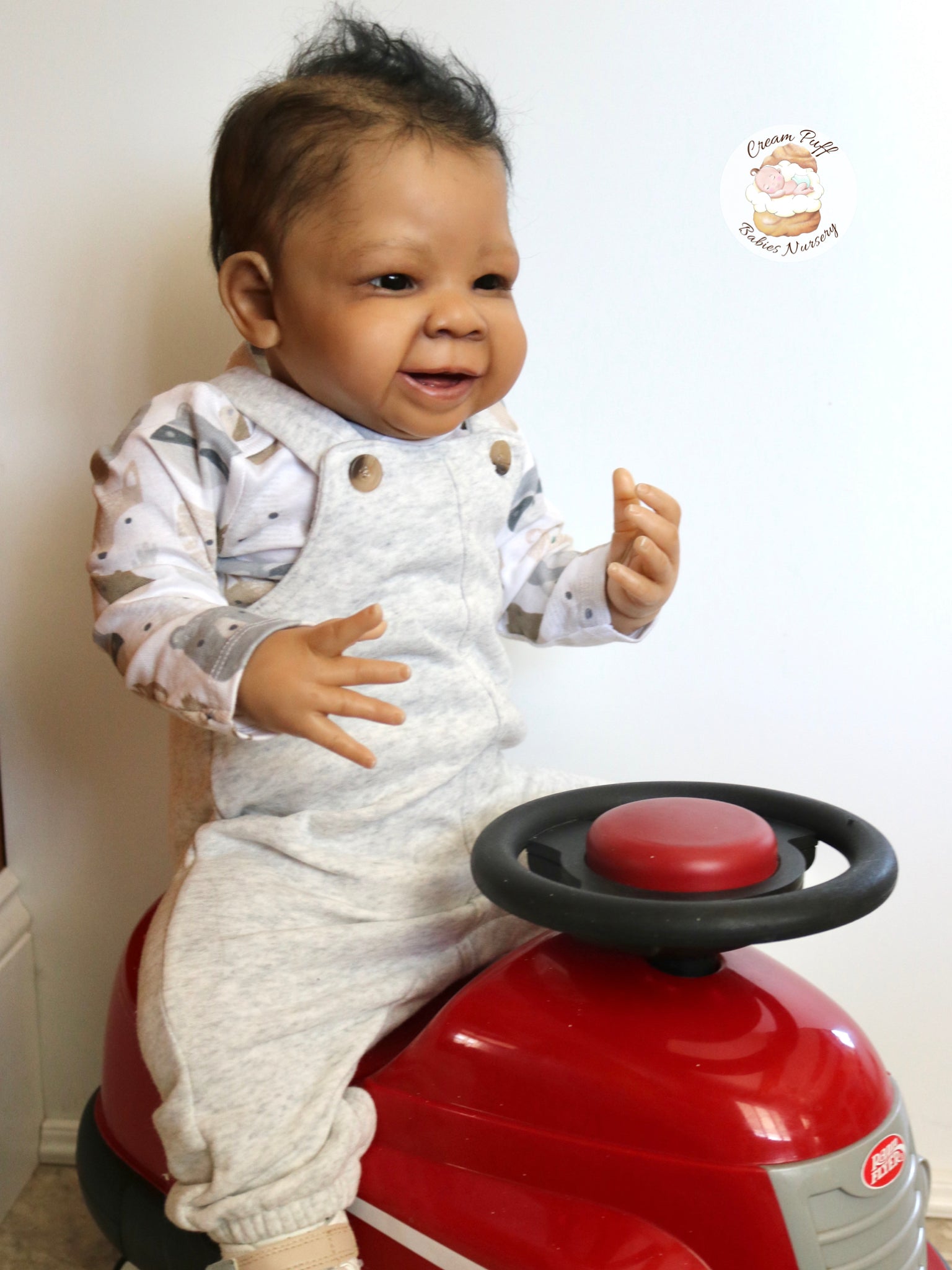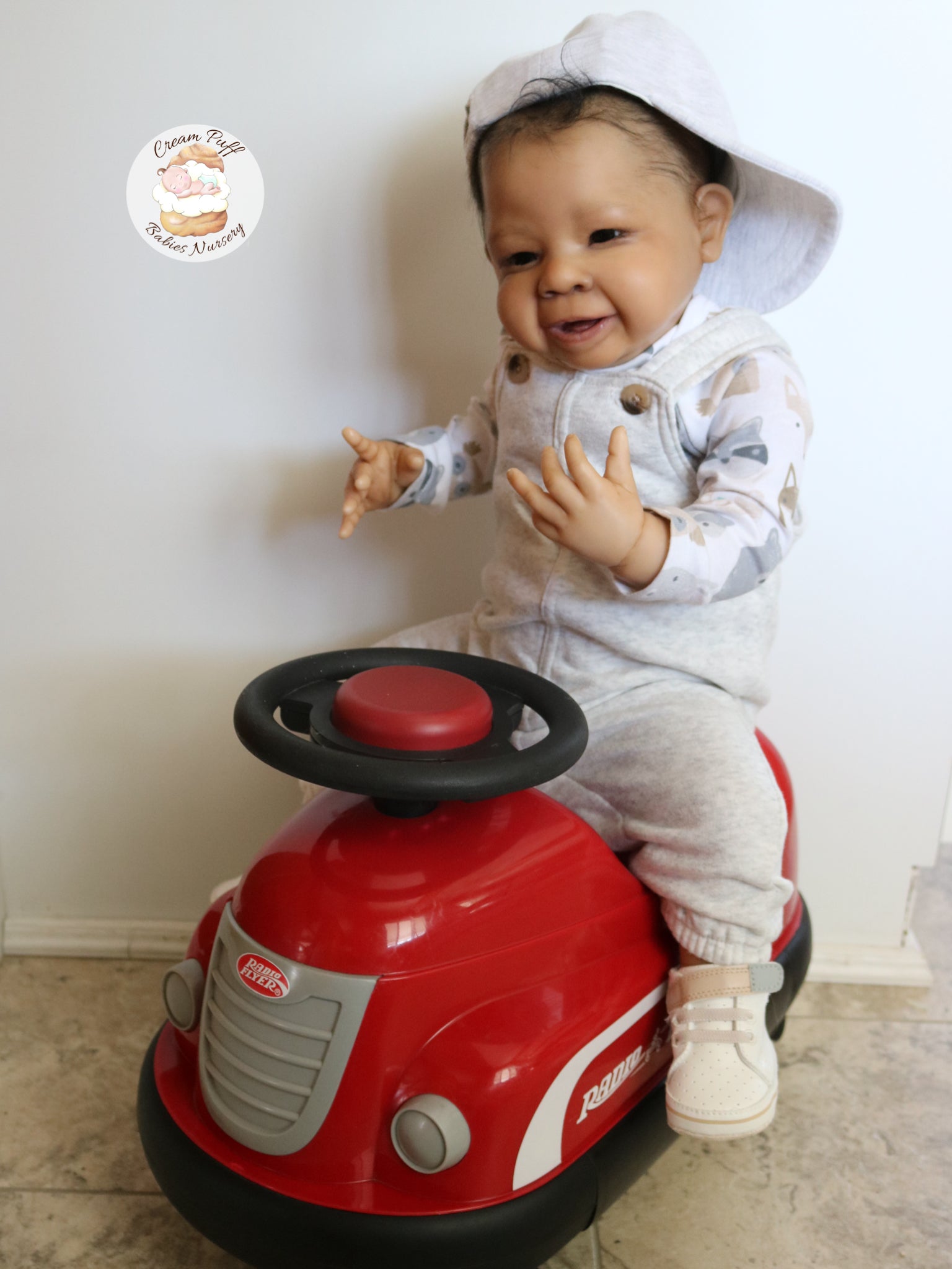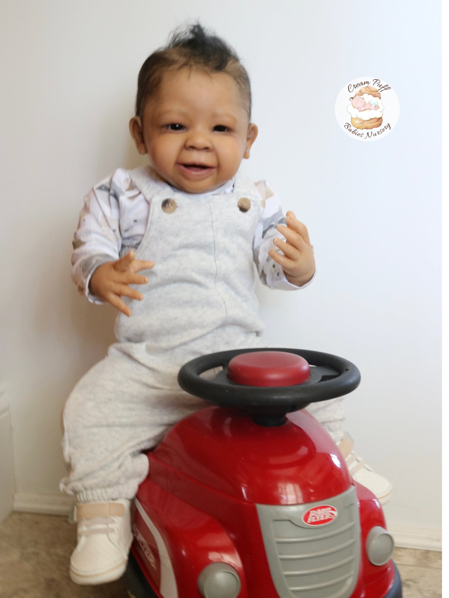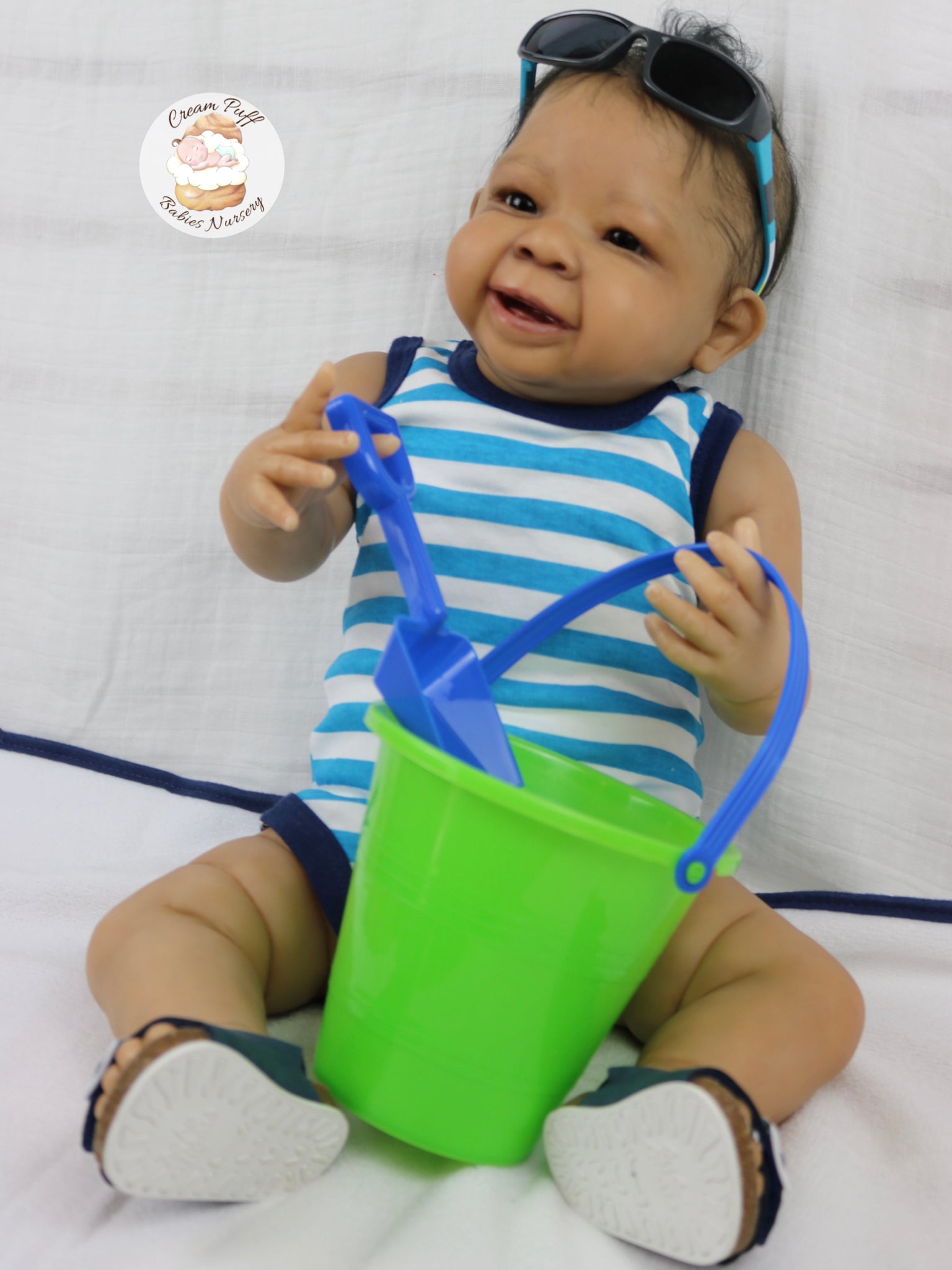This happy little guy is sure to make you smile the moment you lay eyes on him. Baby Camilo’s sweet, fun-loving expression and soulful gaze make him simply irresistible—you’ll feel an instant urge to scoop him up and hold him close. Whether he’s playing with his sand pail and shovel set or going for a cozy wagon ride, Camilo brings a sense of joy, wonder, and playfulness into every moment.