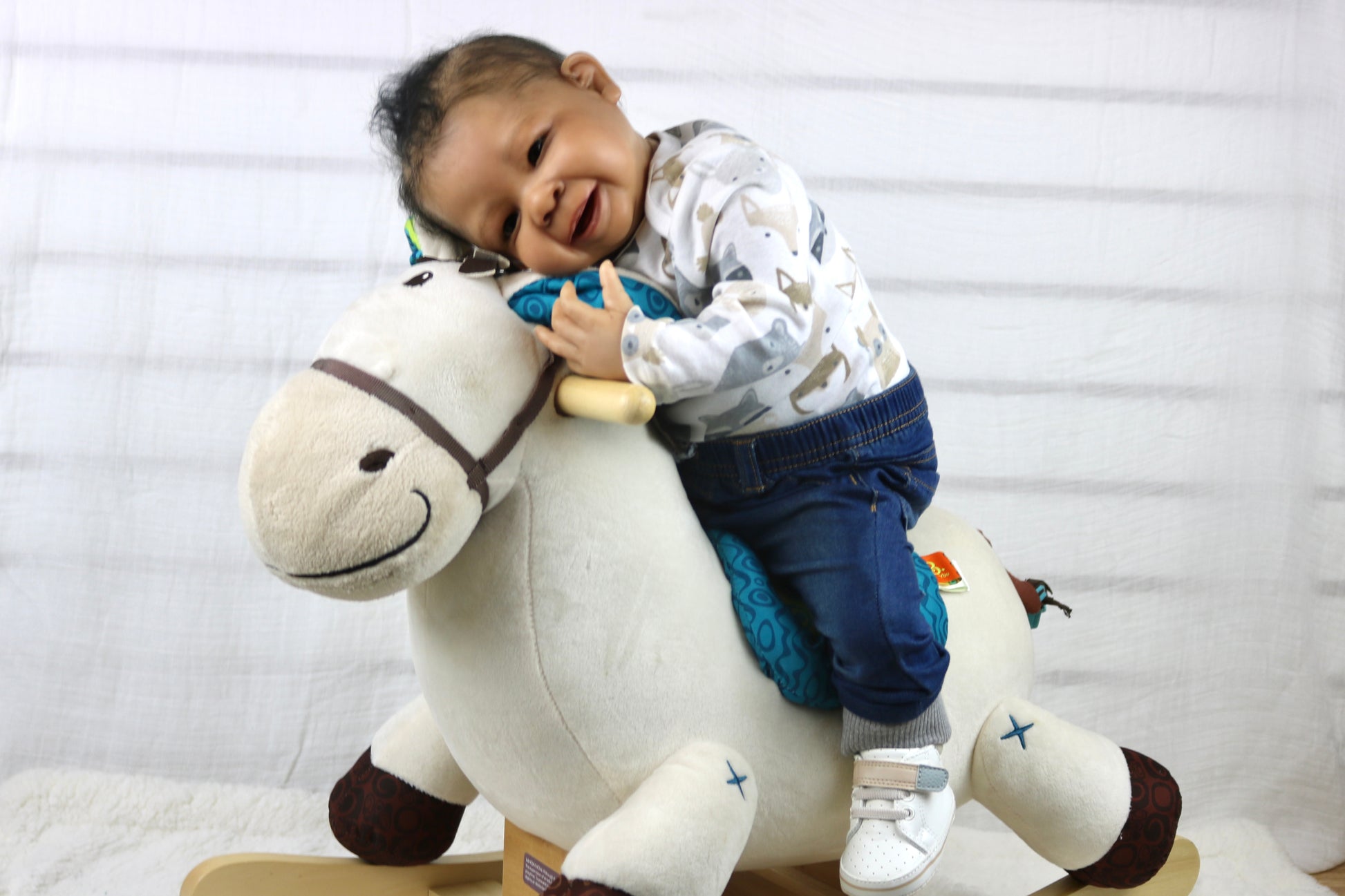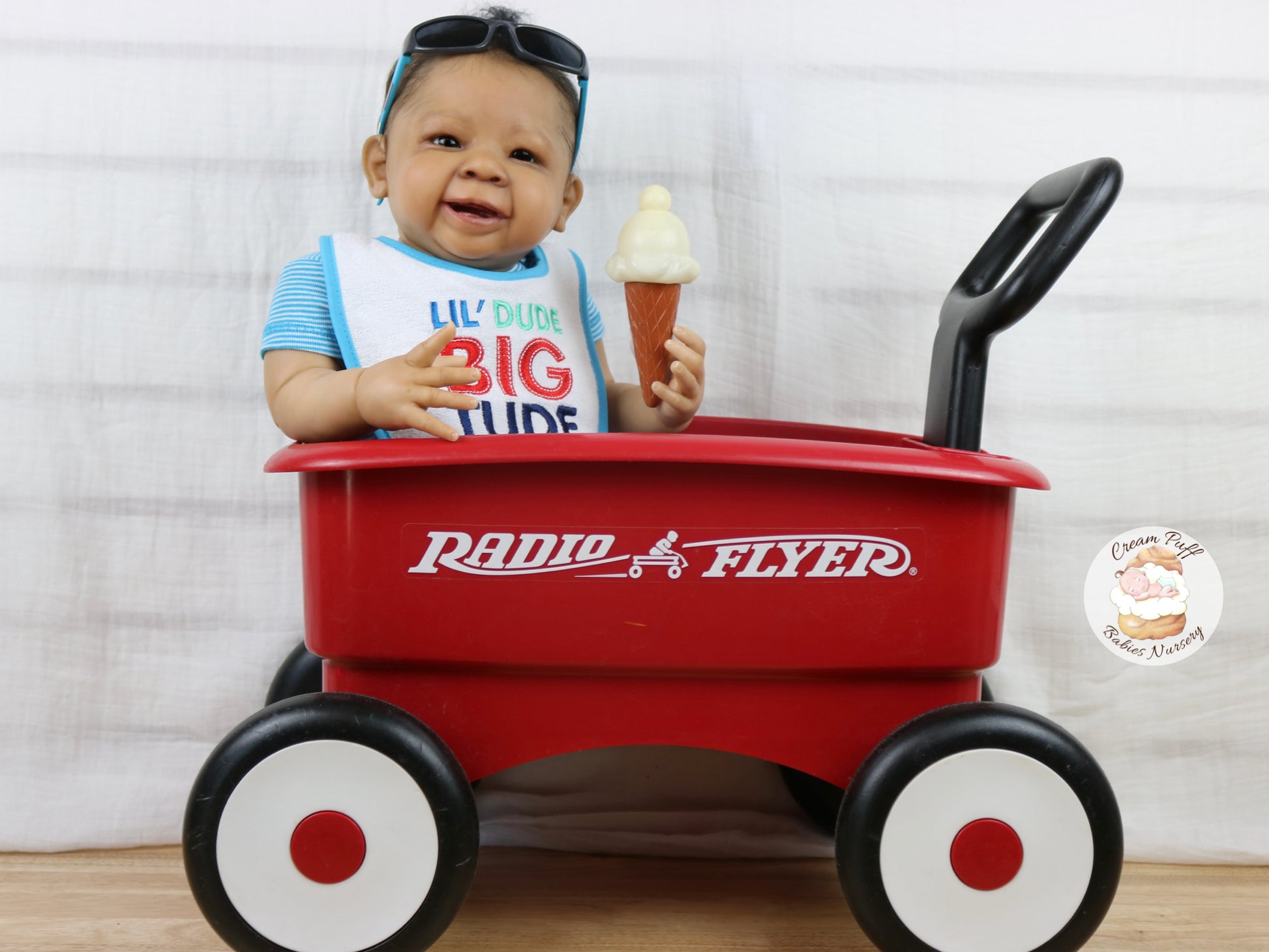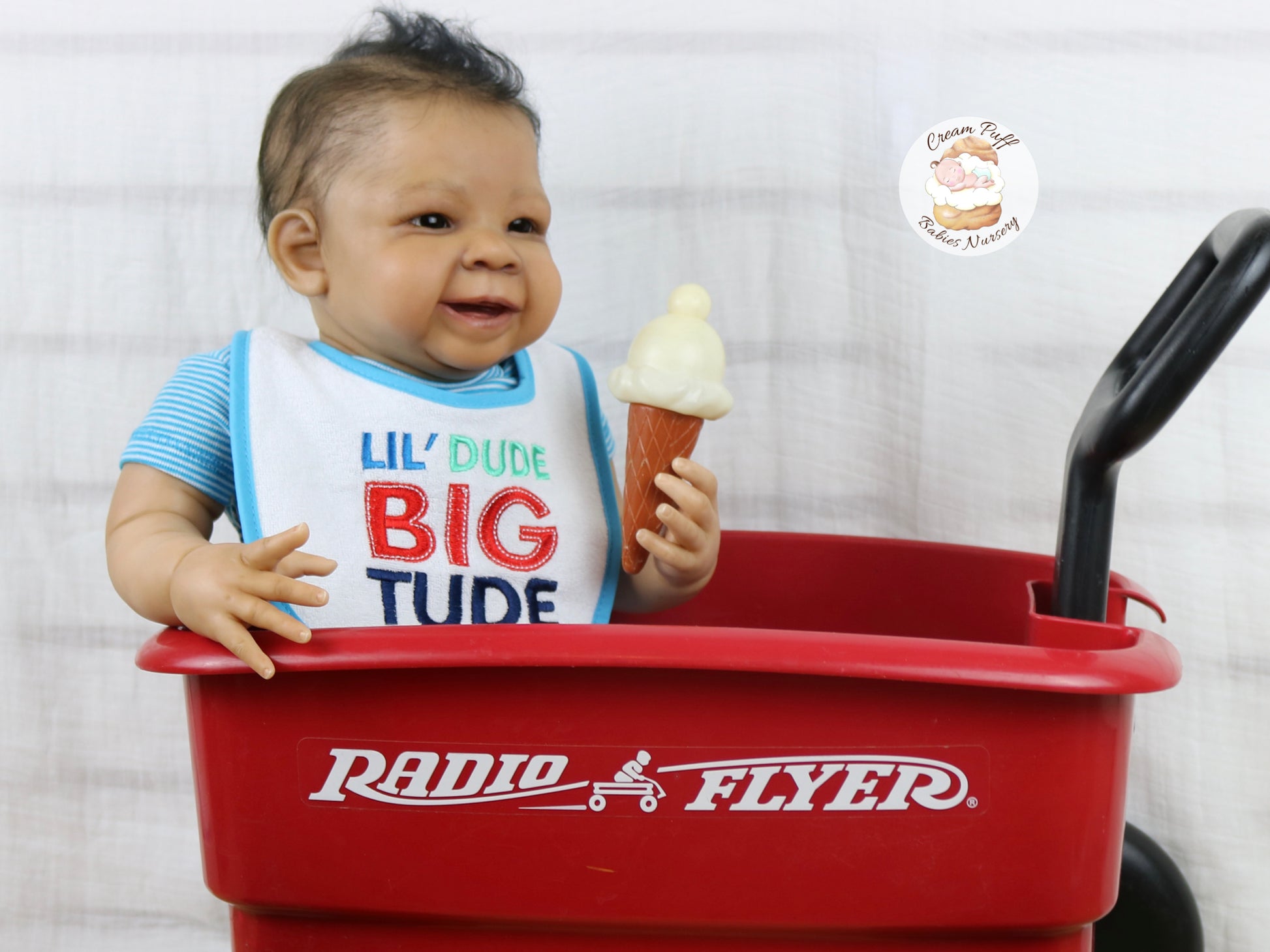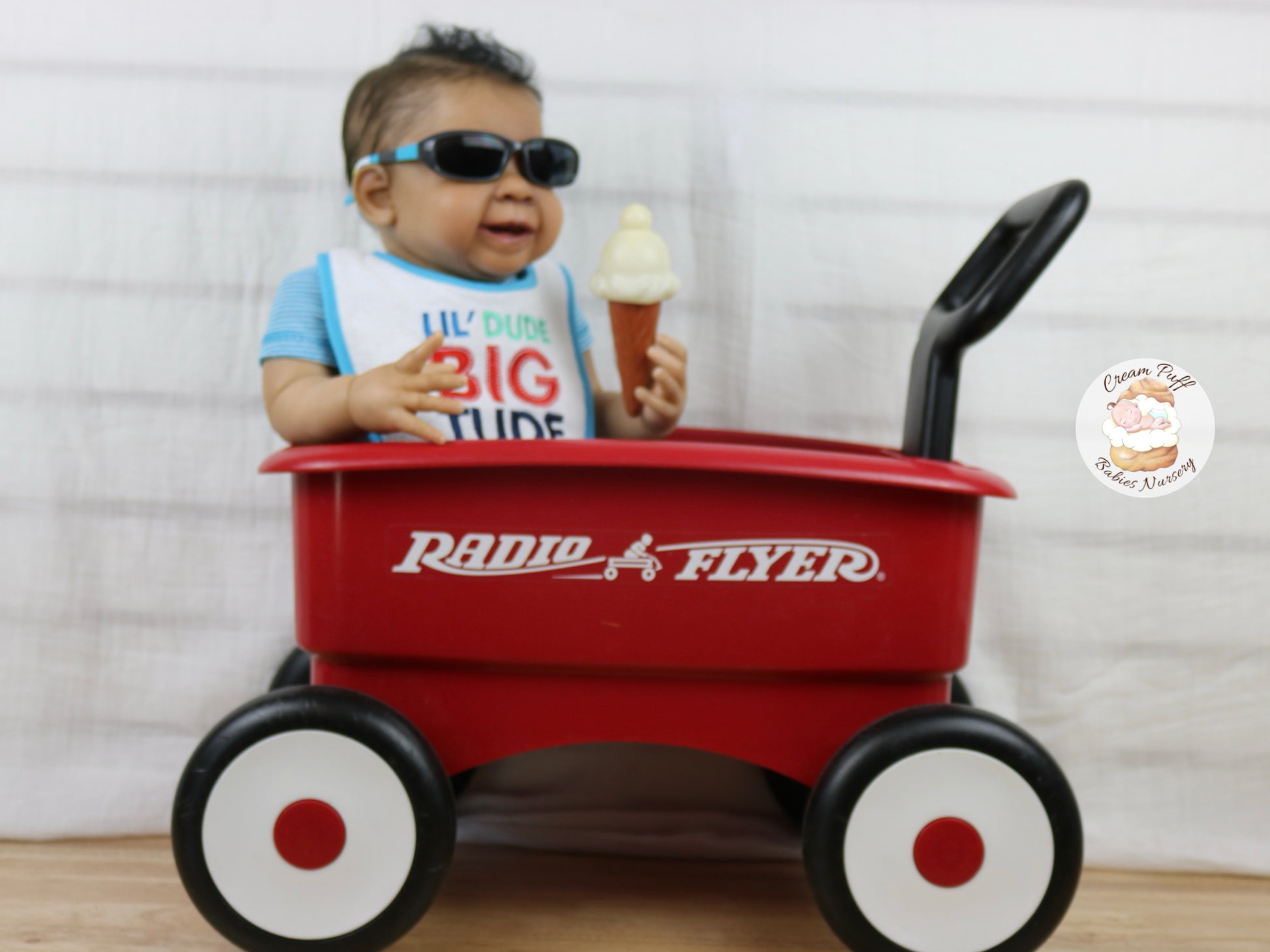 This happy little guy is sure to make you smile the moment you lay eyes on him. Baby Camilo’s sweet, fun-loving expression and soulful gaze make him simply irresistible—you’ll feel an instant urge to scoop him up and hold him close. Whether he’s playing with his sand pail and shovel set or going for a cozy wagon ride, Camilo brings a sense of joy, wonder, and playfulness into every moment.