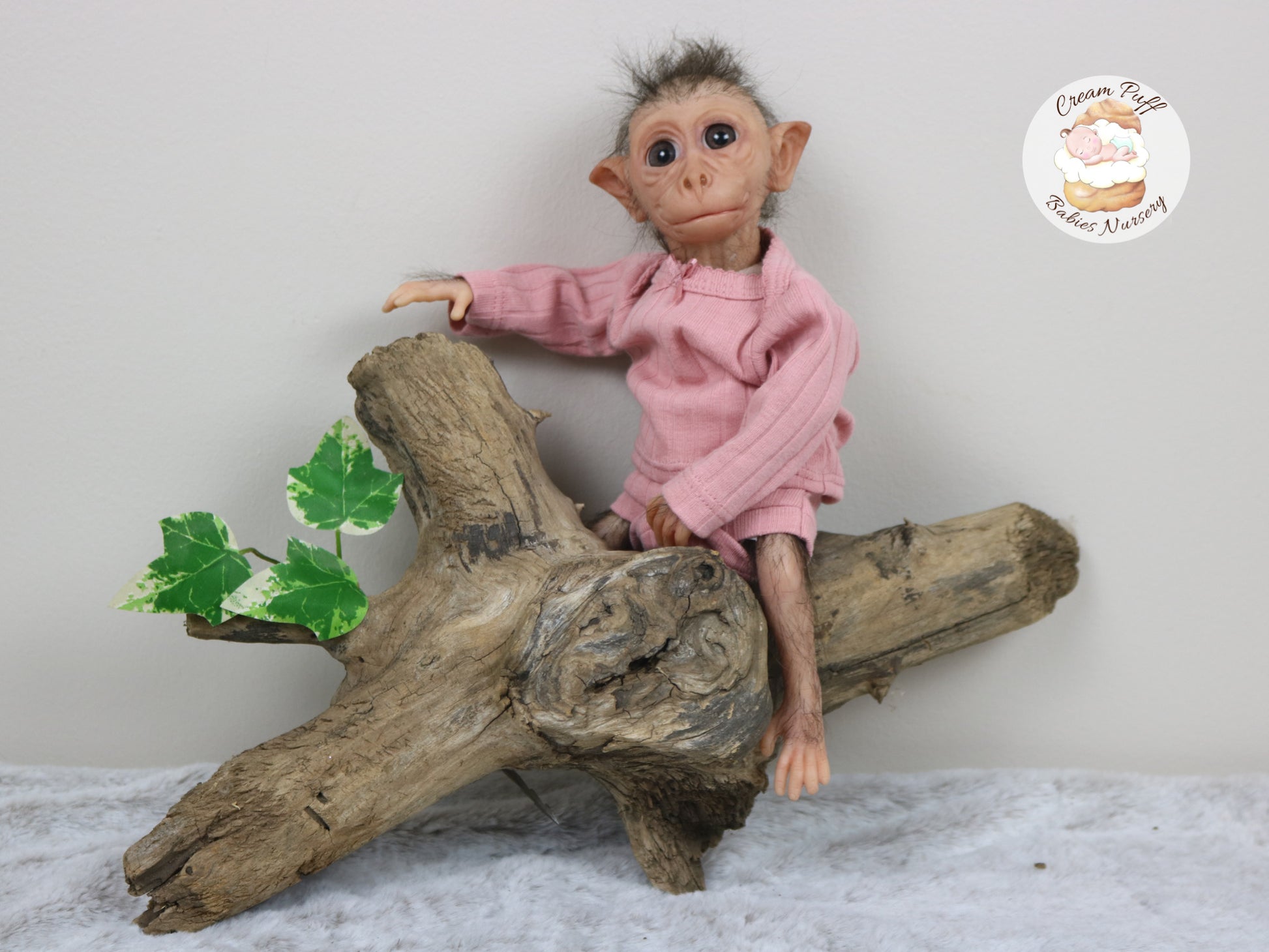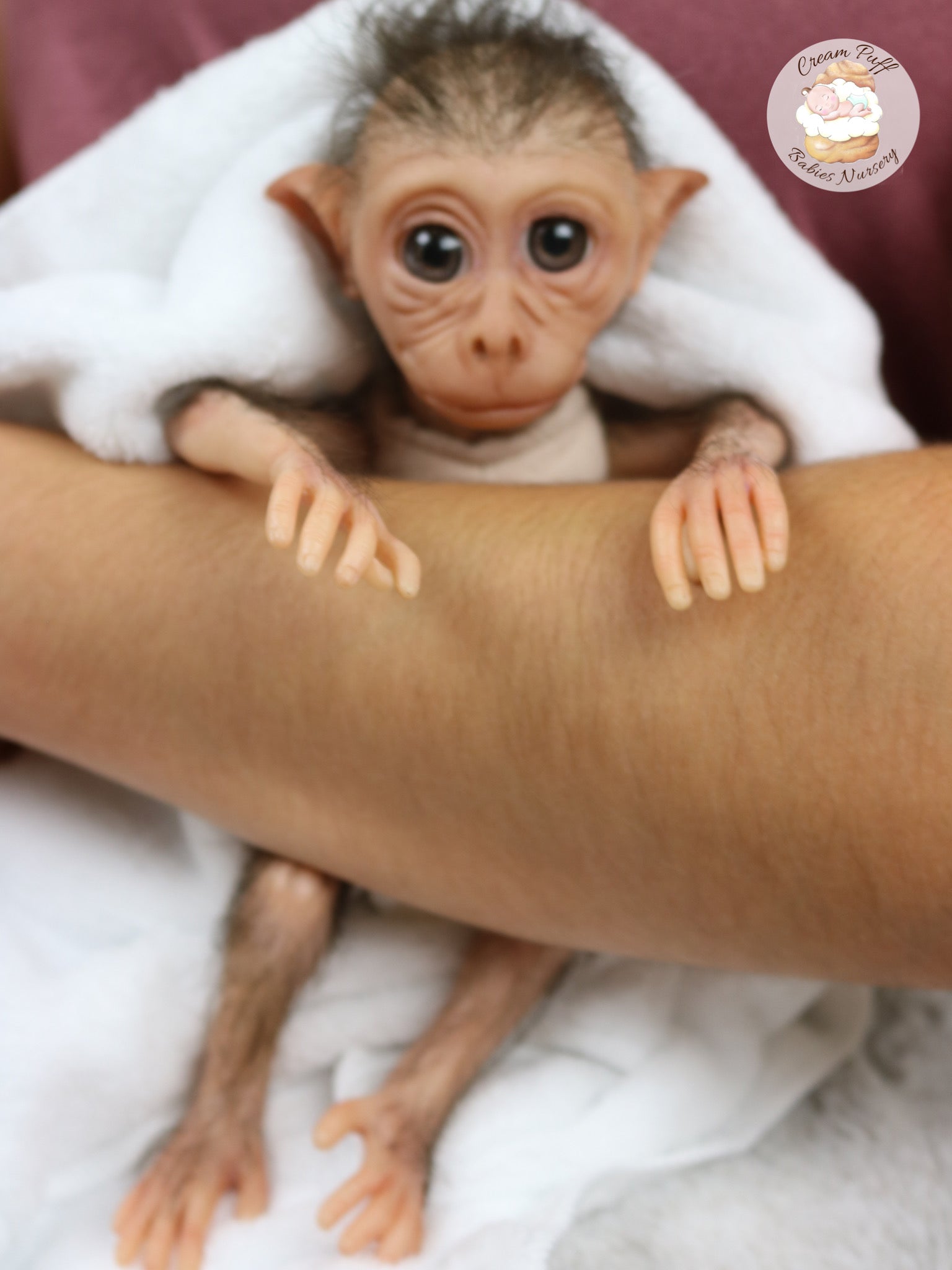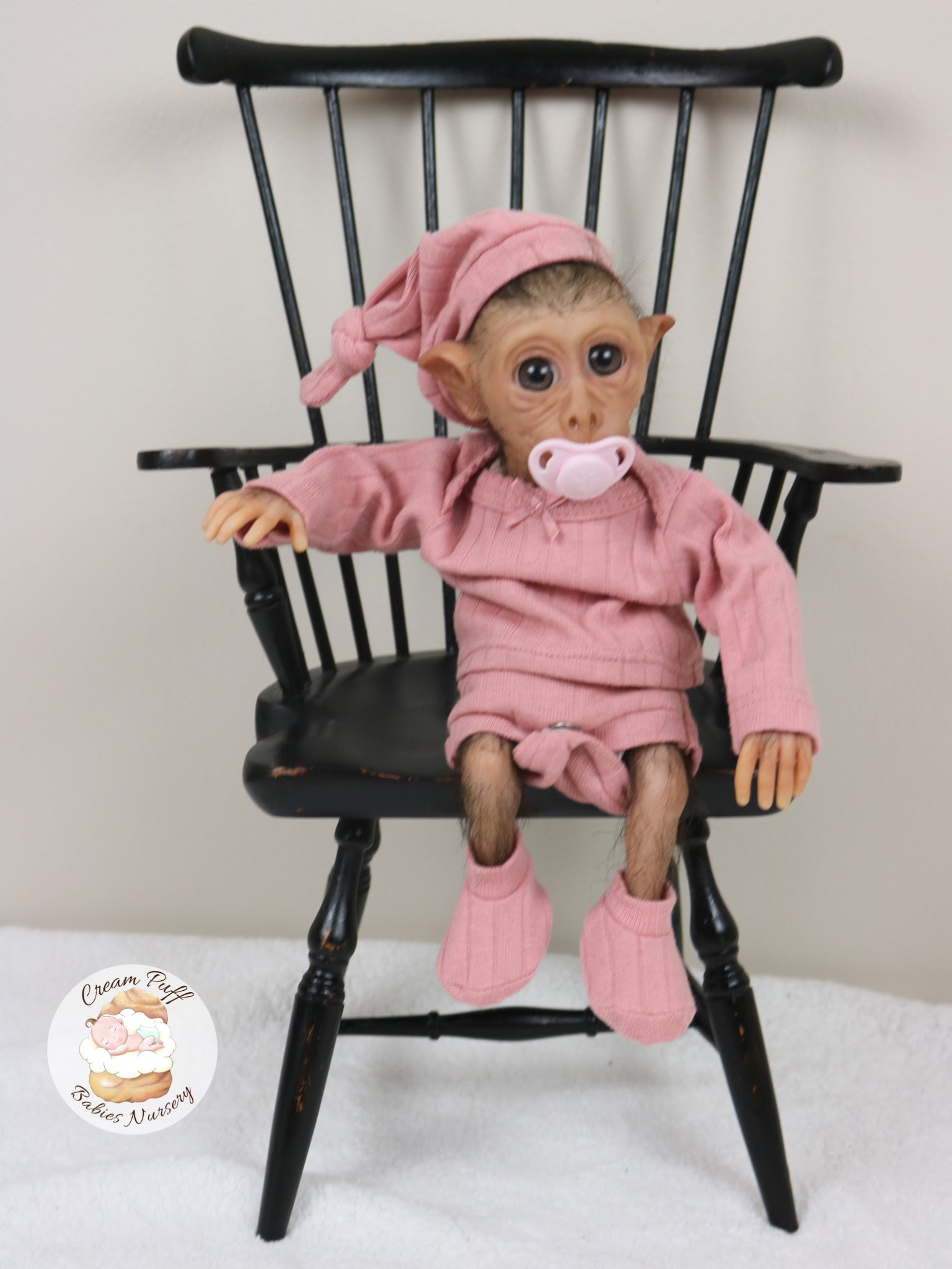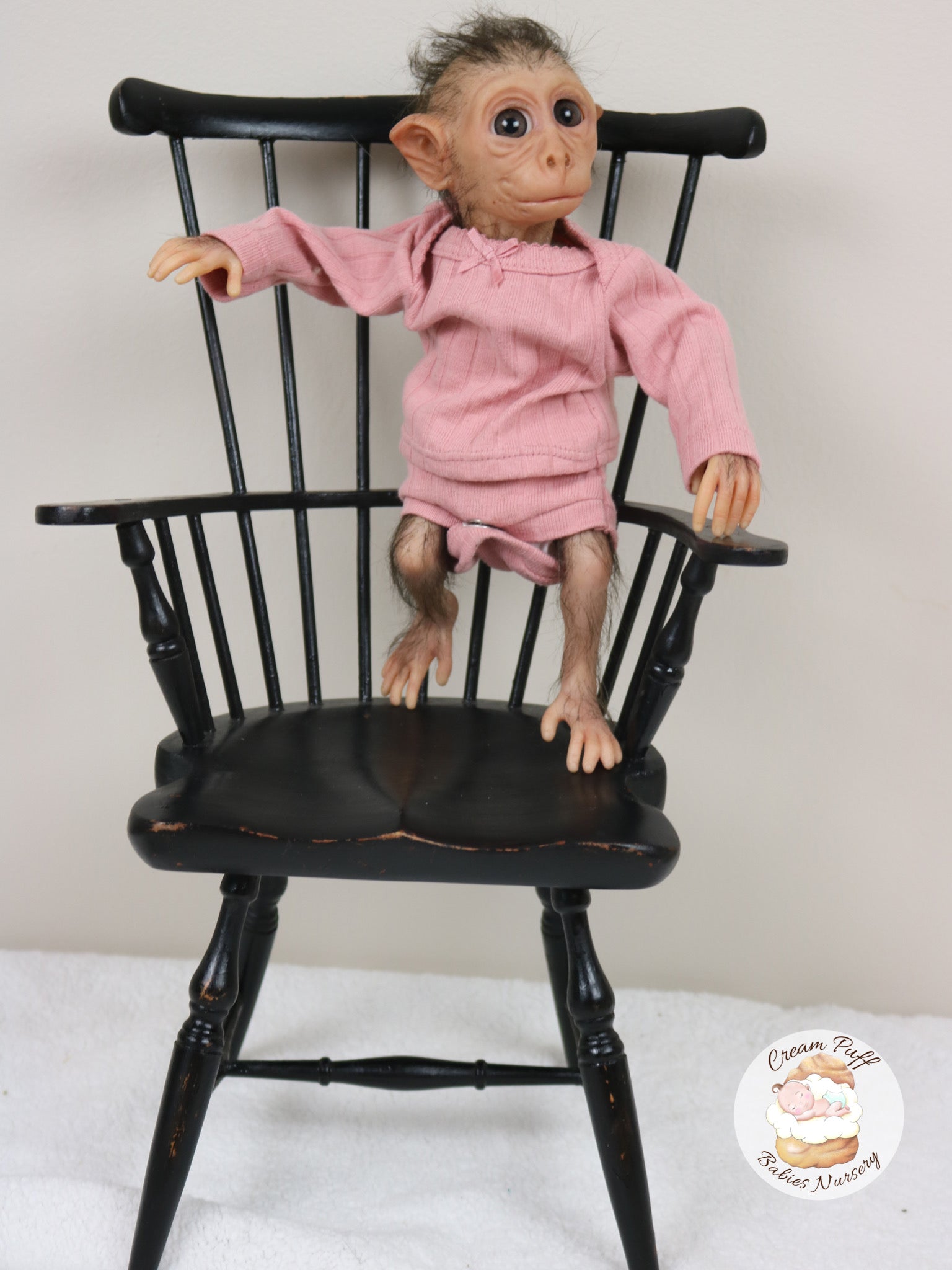 Our nursery is a smoke free environment and with delicate handling and extra special care, this jungle critter has been transformed into a treasured little "Cream Puff Babies Nursery" monkey baby doll