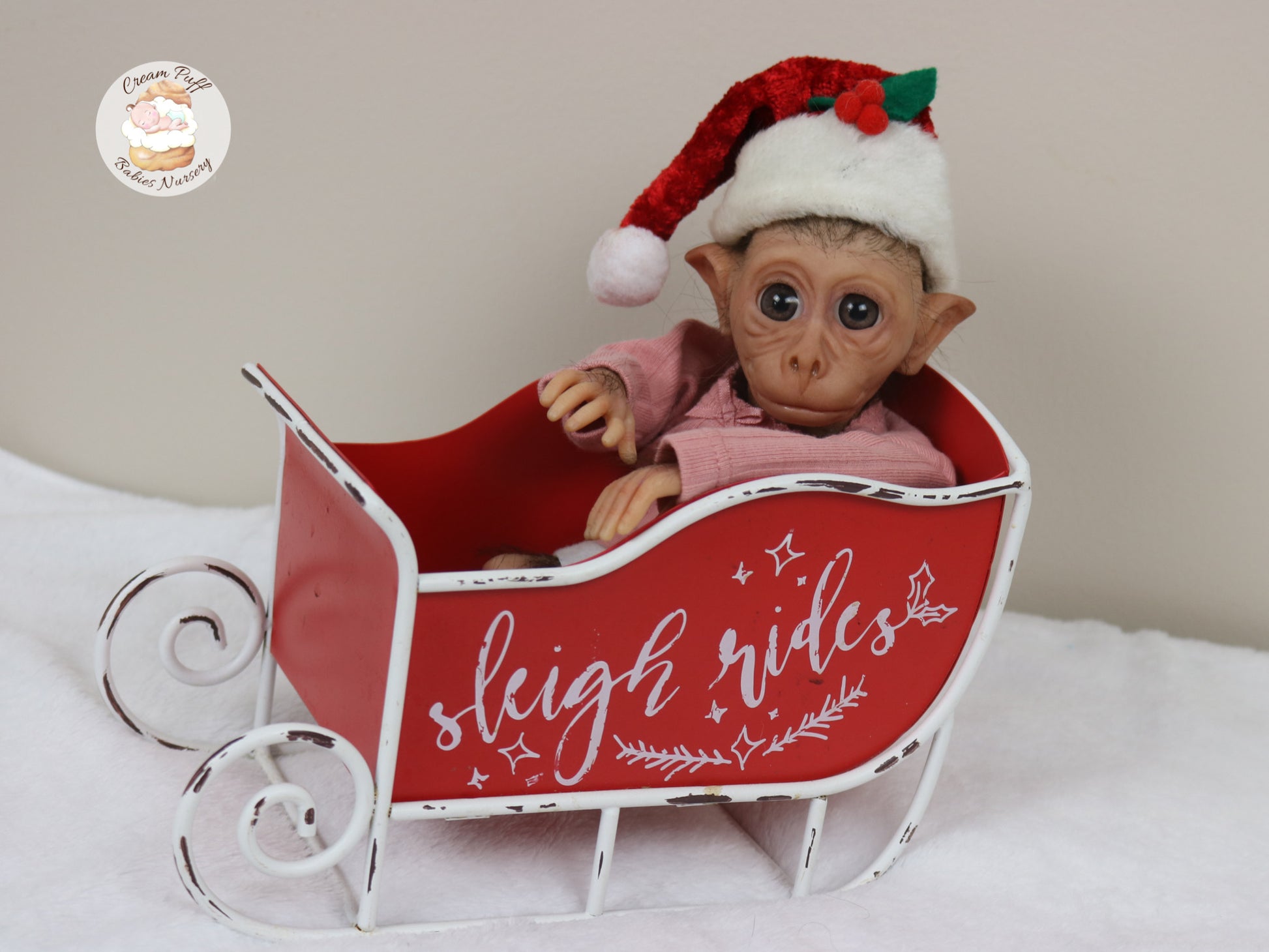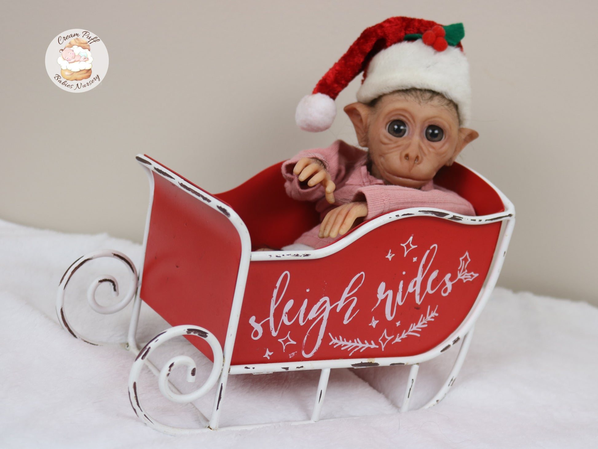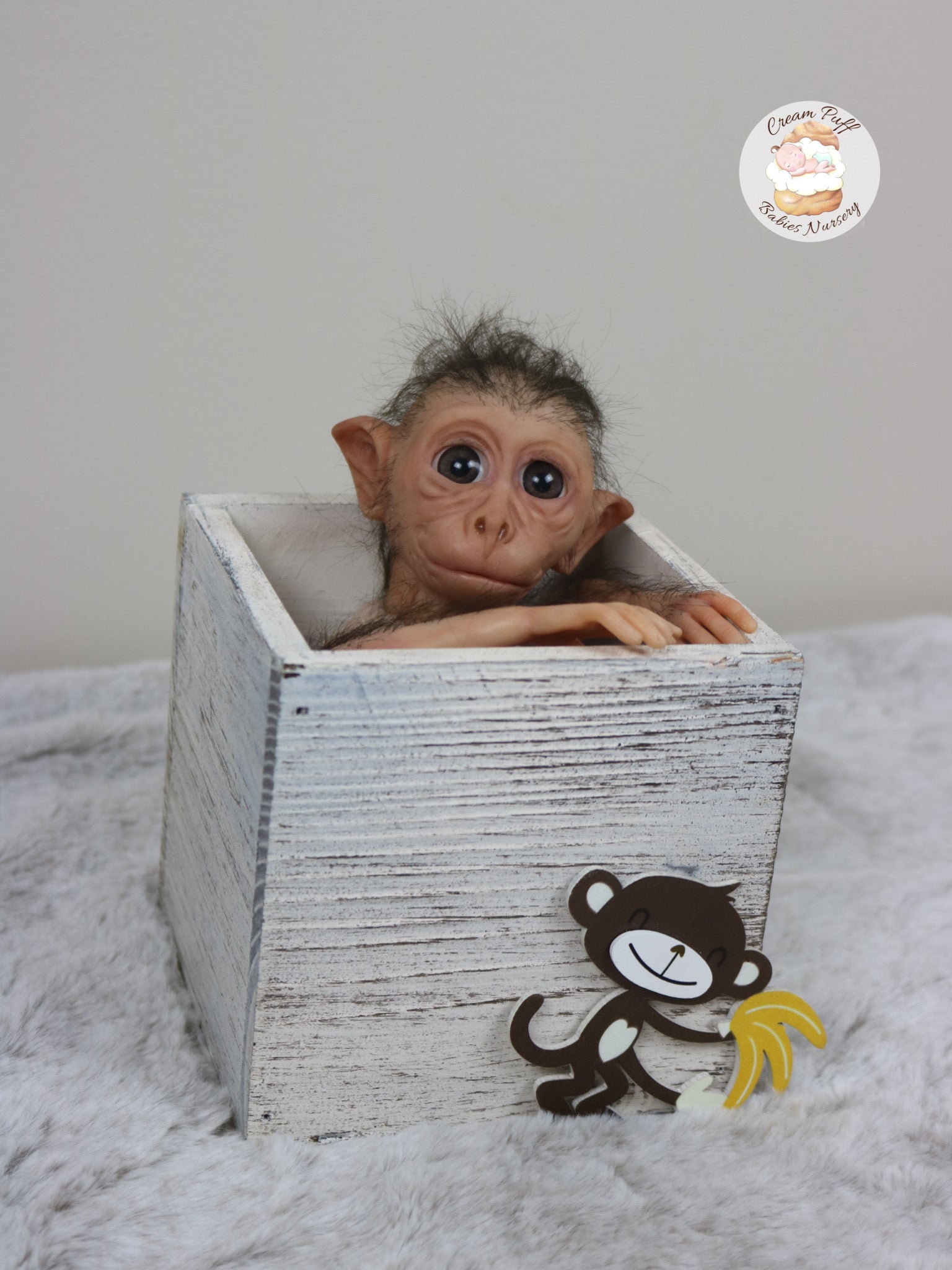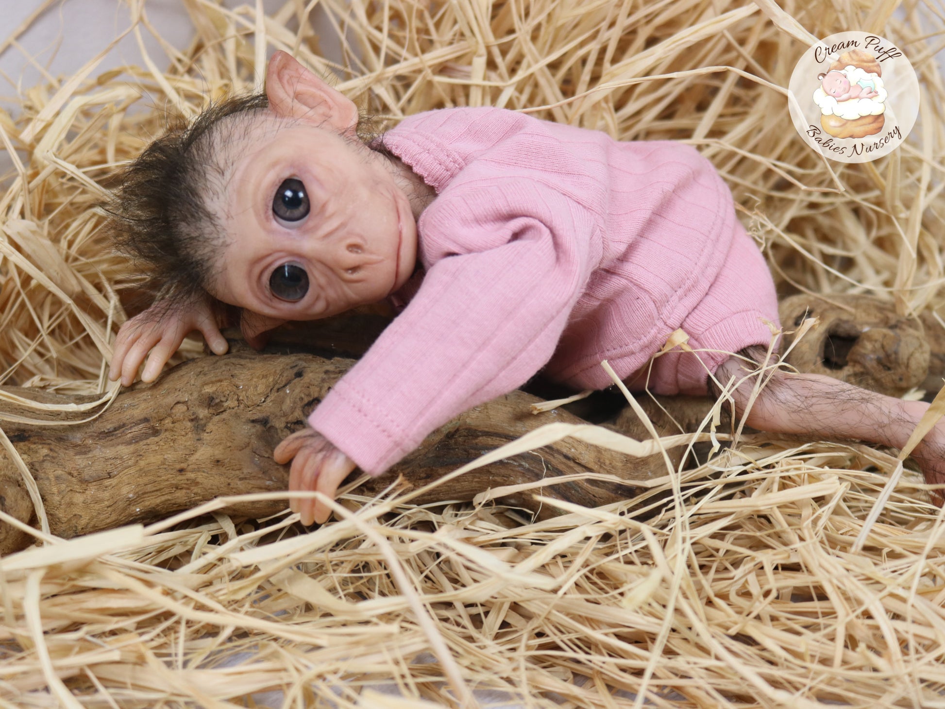 Our nursery is a smoke free environment and with delicate handling and extra special care, this jungle critter has been transformed into a treasured little "Cream Puff Babies Nursery" monkey baby doll