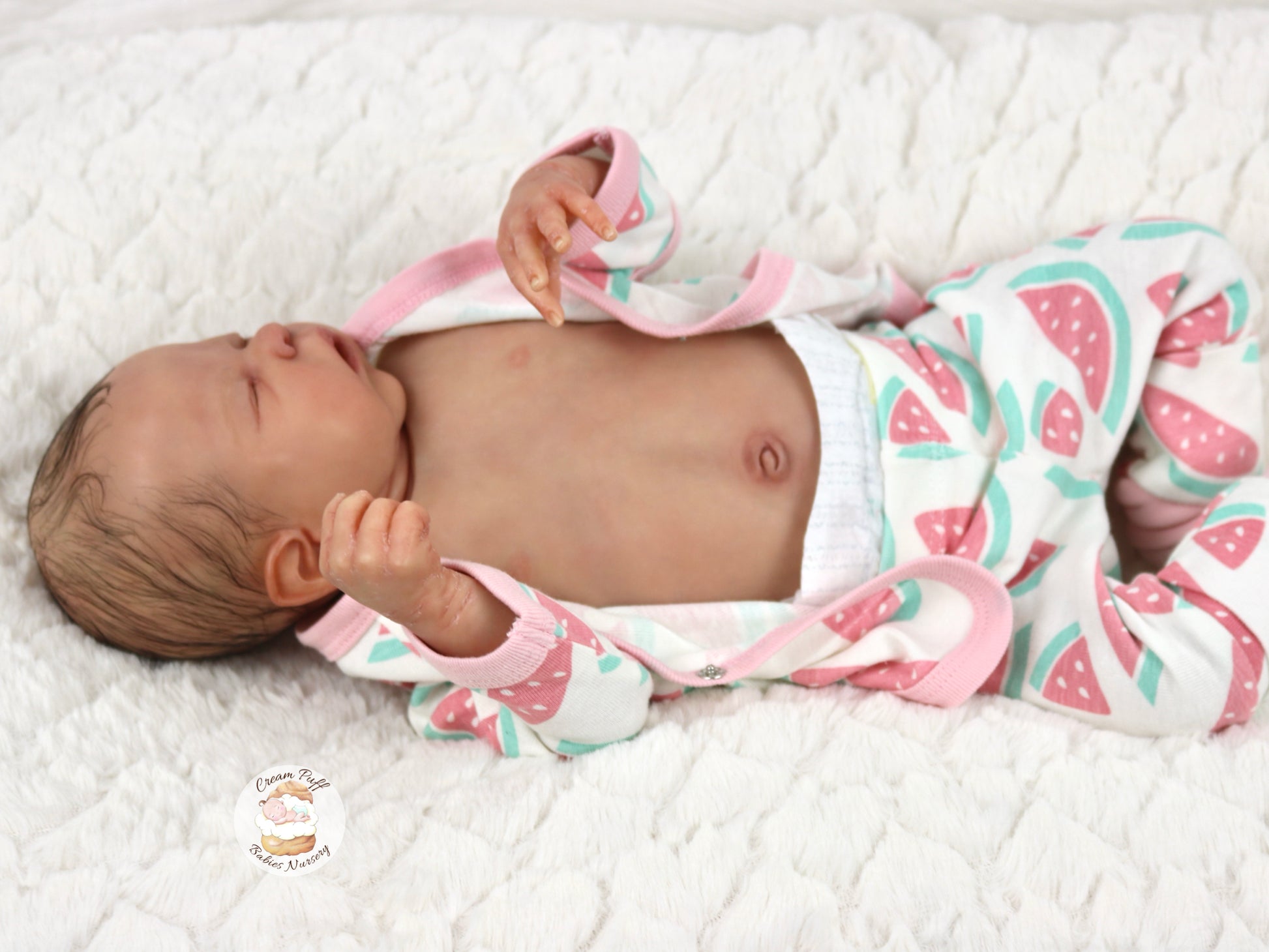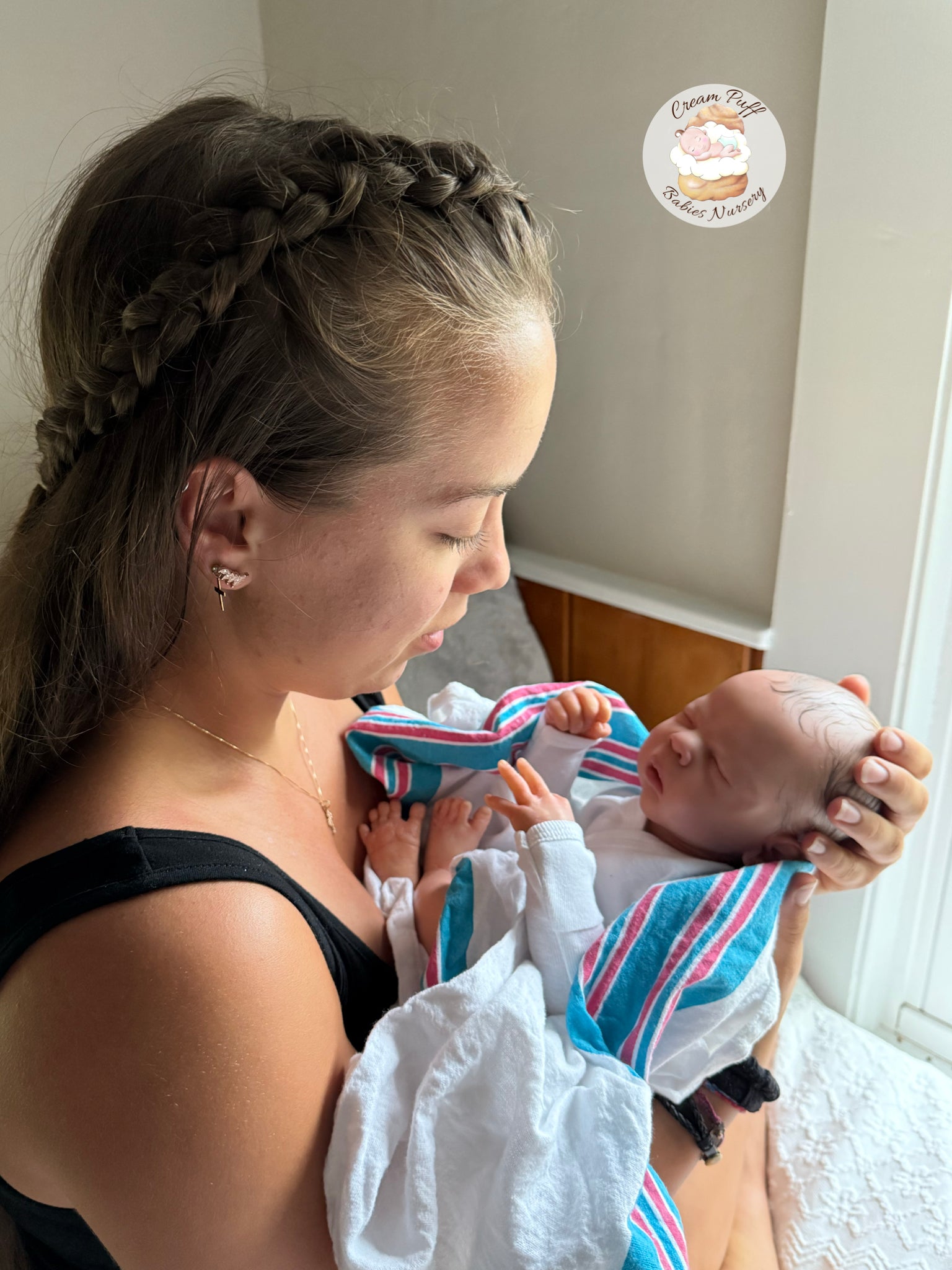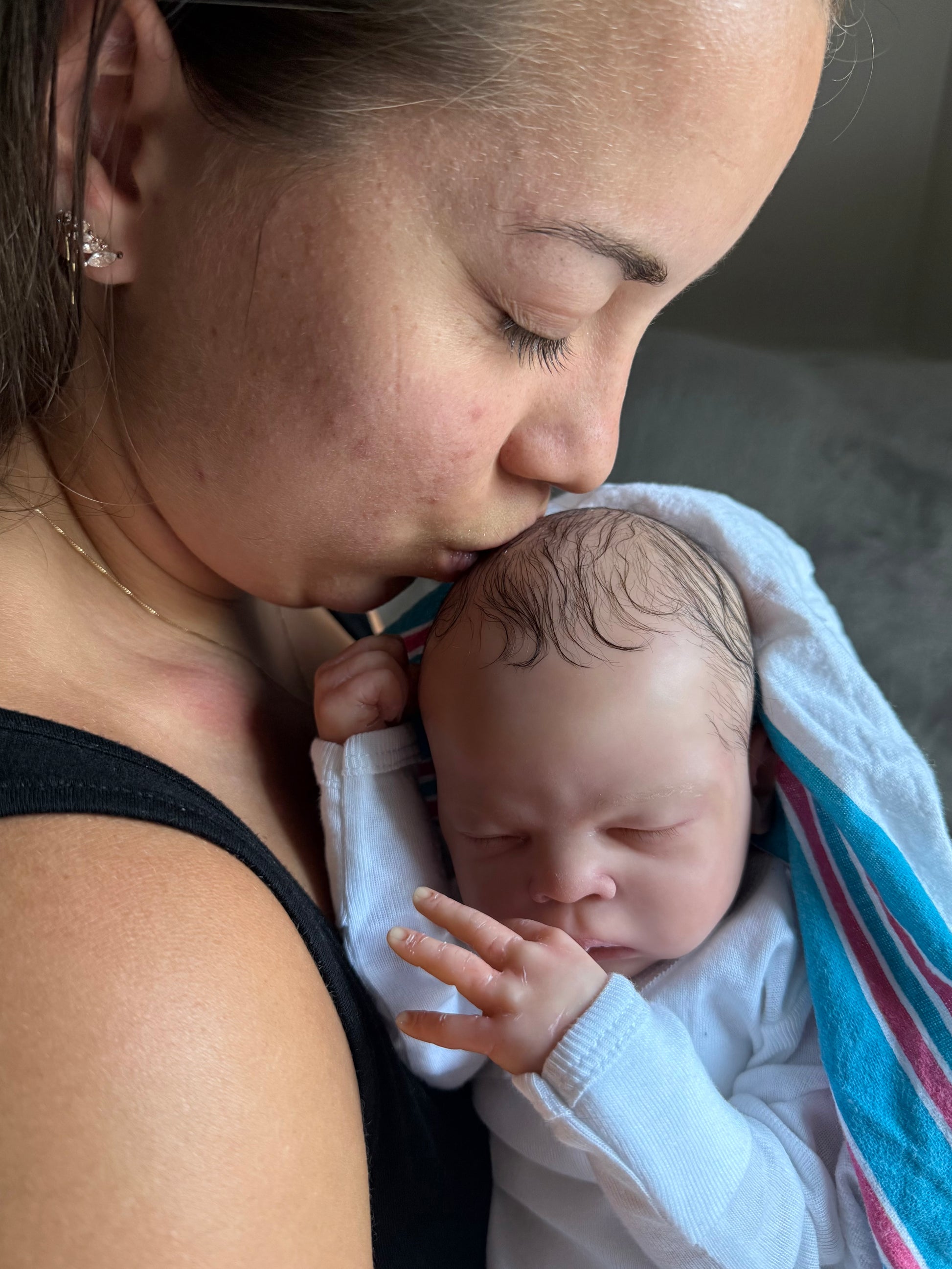 Bringing home this precious reborn newborn baby girl is like welcoming a real bundle of joy into your arms. Carefully hand-crafted to resemble a true newborn, she is full of lifelike details—from her tiny hands and feet to her soft, rosy skin. Every little feature has been thoughtfully designed to make her feel like a real baby, so when you hold her, it’s as if you’re cradling a tiny, perfect miracle. With her gentle weight, soft hair, and newborn features she’ll melt your heart and become a cherished part of your family. Welcome this sweet girl into your home, and experience the love and joy of nurturing a newborn once again.