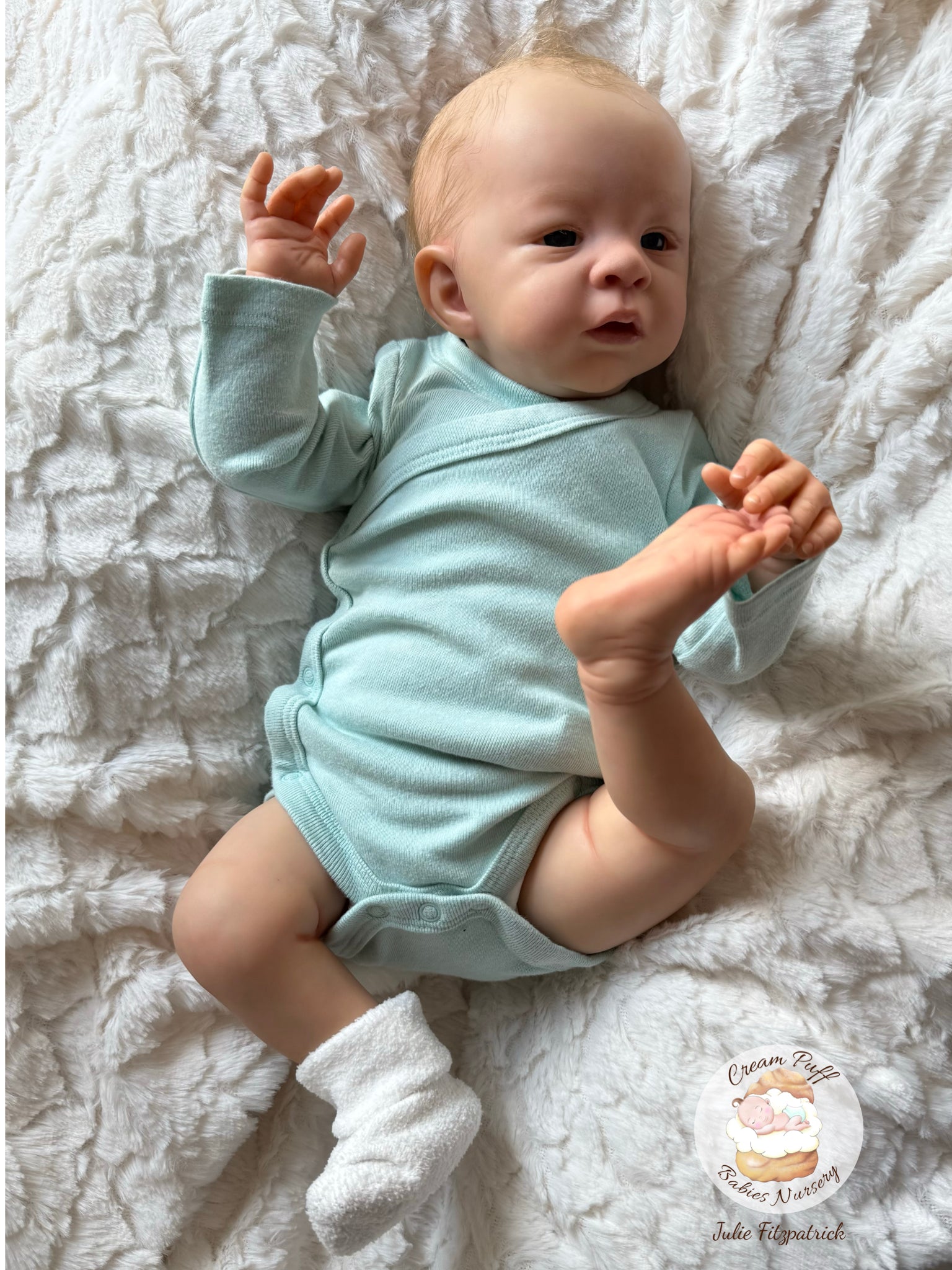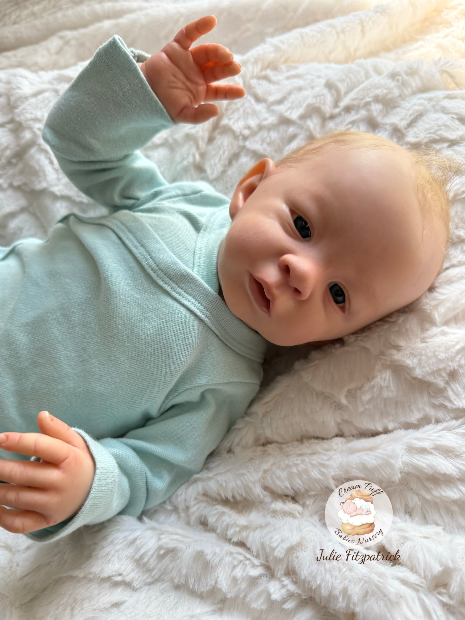 🍼Meet Lil Jude — a heart-melting reborn baby boy created from the original Lil Jude sculpt by Laura Tuzio Ross. Every detail of this sweet little guy has been lovingly brought to life, making him the perfect addition for collectors or anyone dreaming of a forever baby to cuddle. Nestled in a cozy corner of the nursery, wrapped in the softest fleece blanket, lay this tiny bundle of joy — a reborn baby doll so lifelike, he seemed to breathe with the rhythm of dreams. His delicate little fingers curled naturally, as if ready to hold on to your heart. From the moment he arrived, it was clear he was more than just a doll — he was a story waiting to be told, a quiet companion full of wonder, love, and a touch of magic.