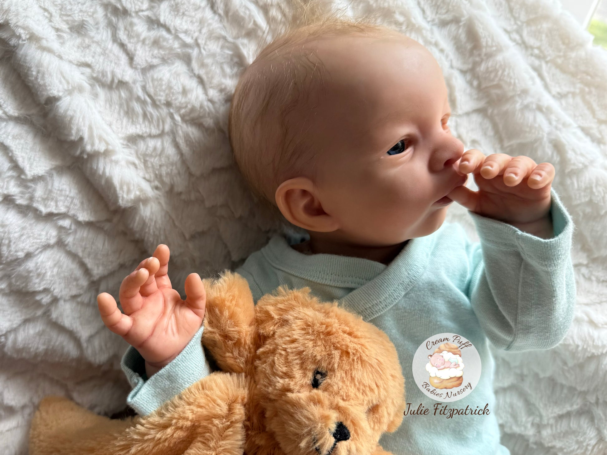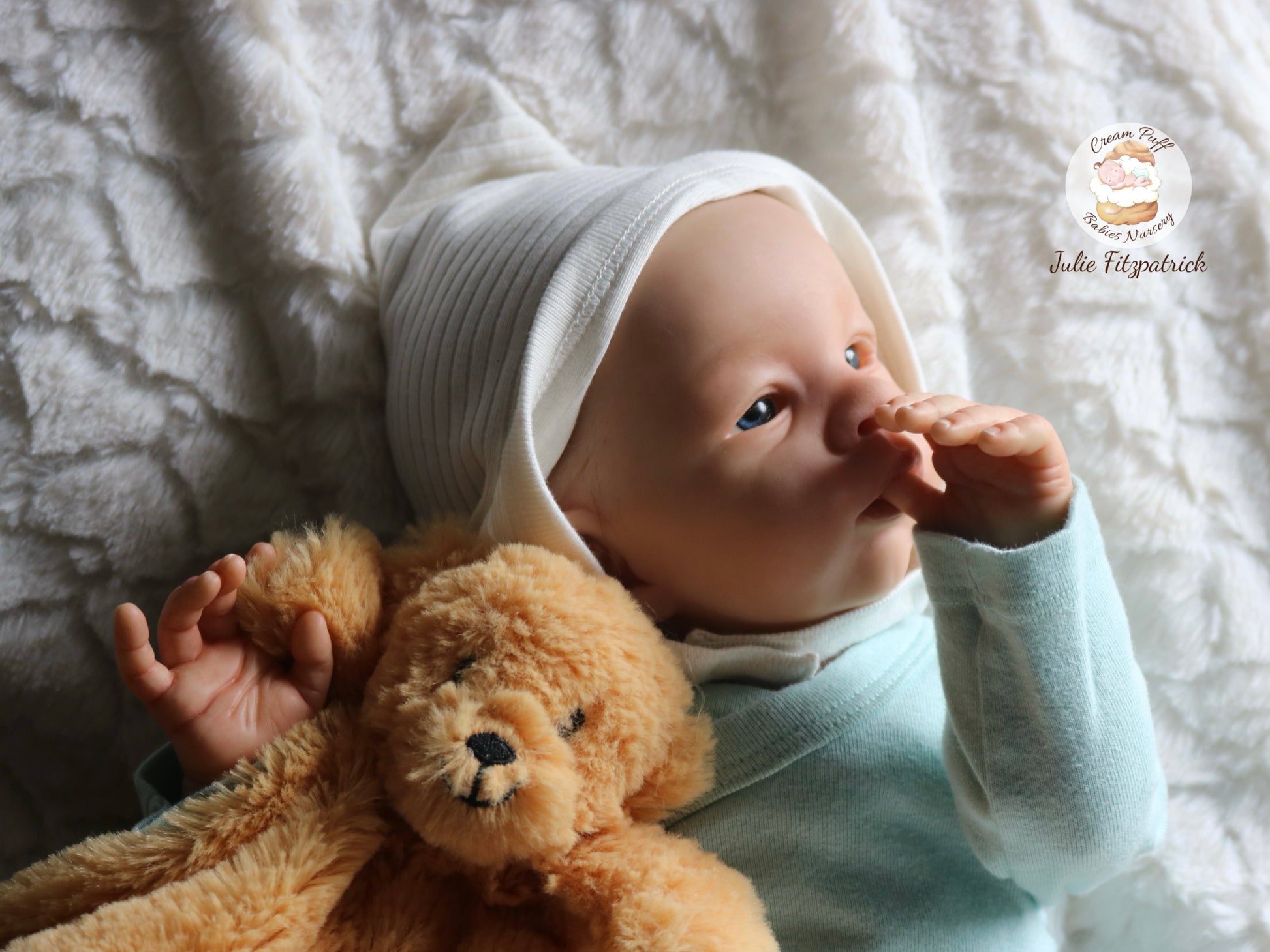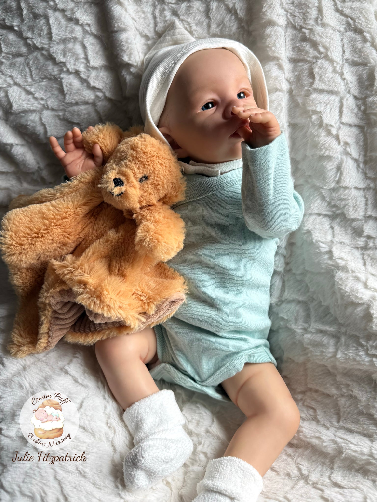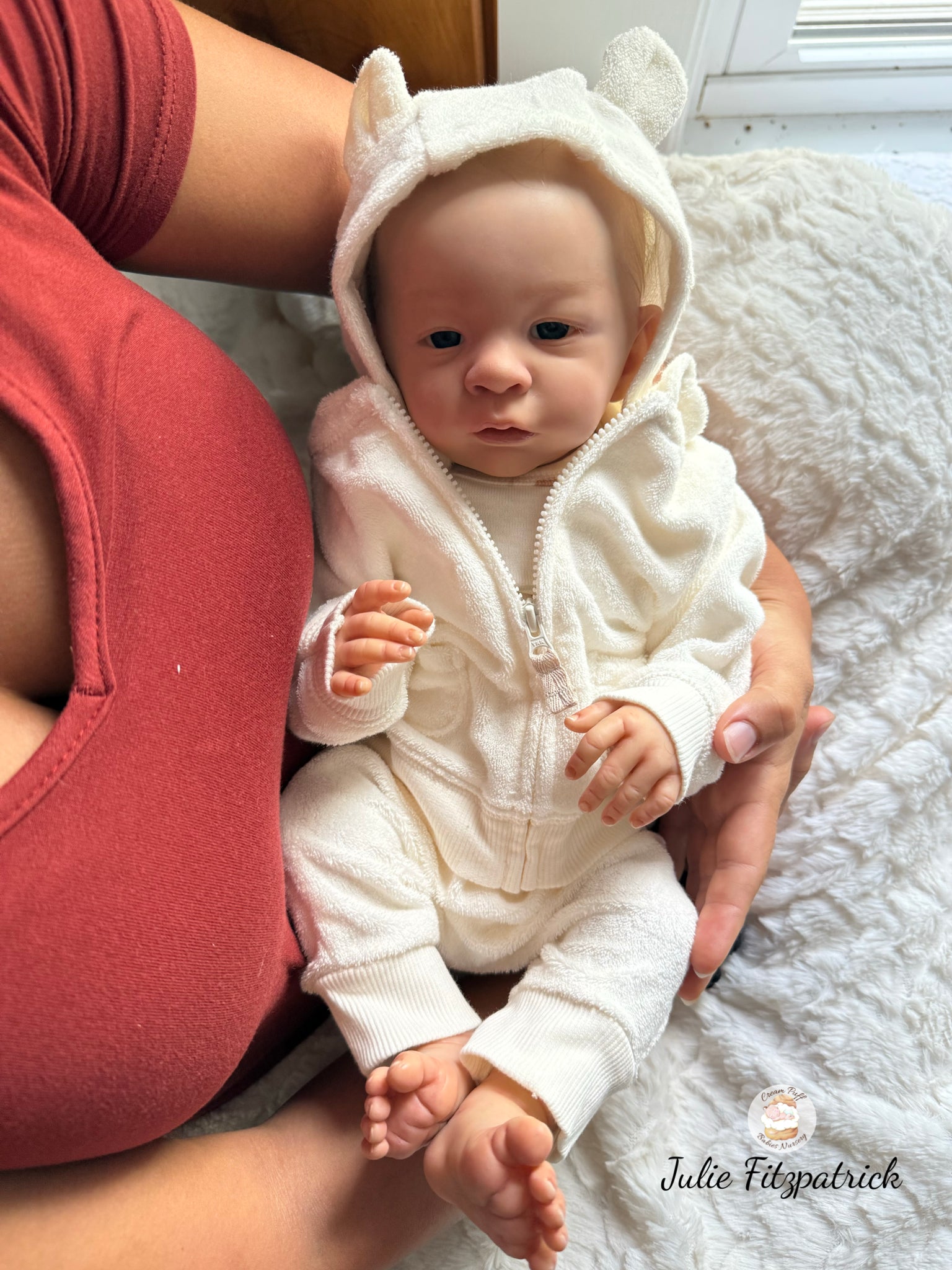 Lil Jude is a handcrafted, heirloom-quality collectible doll—not intended for play or young children. Perfect for collectors, reborn enthusiasts, and anyone who appreciates the warmth and comfort of these lifelike baby dolls. Props shown in photos are not included unless mentioned above. All sales are final due to the handmade nature of work that goes in to each baby. Every baby is packed with love and great care to ensure they arrive safely at their forever home.