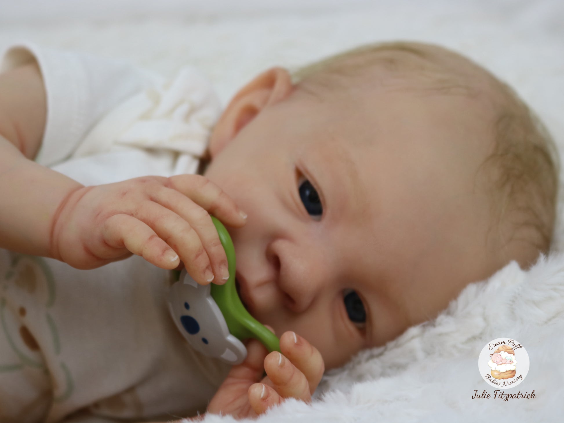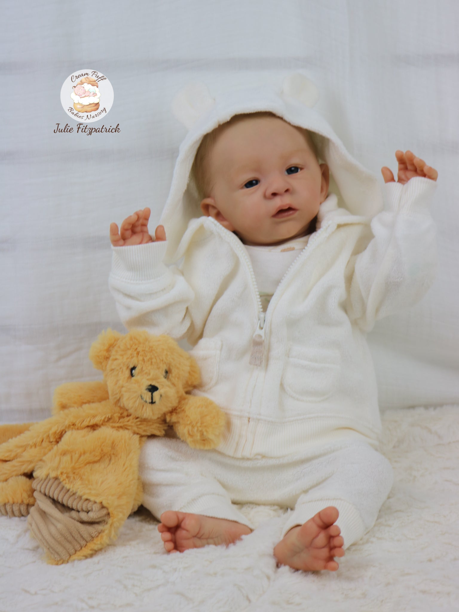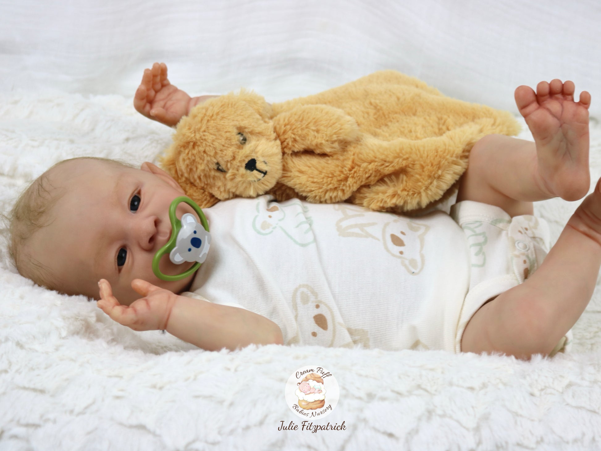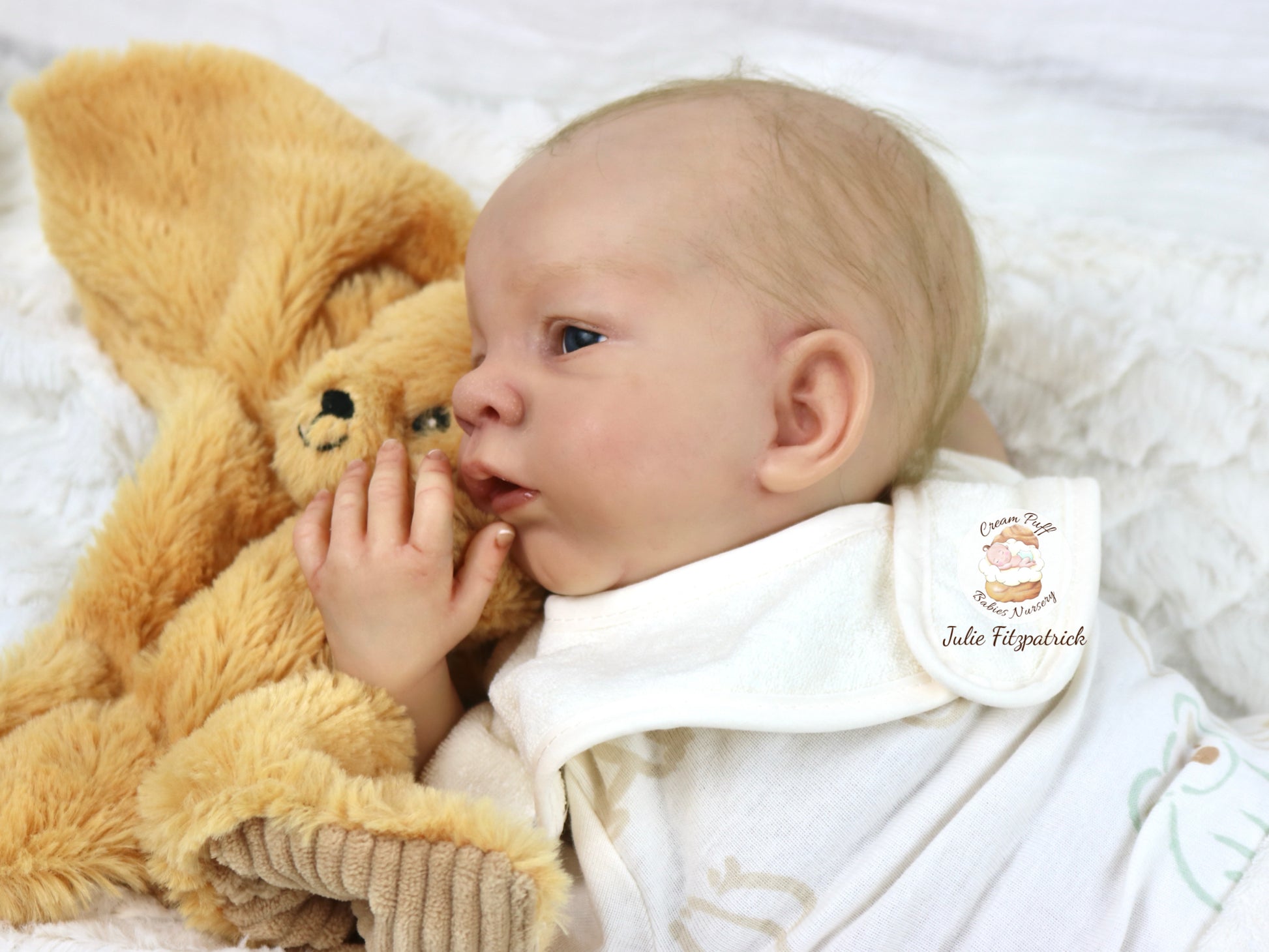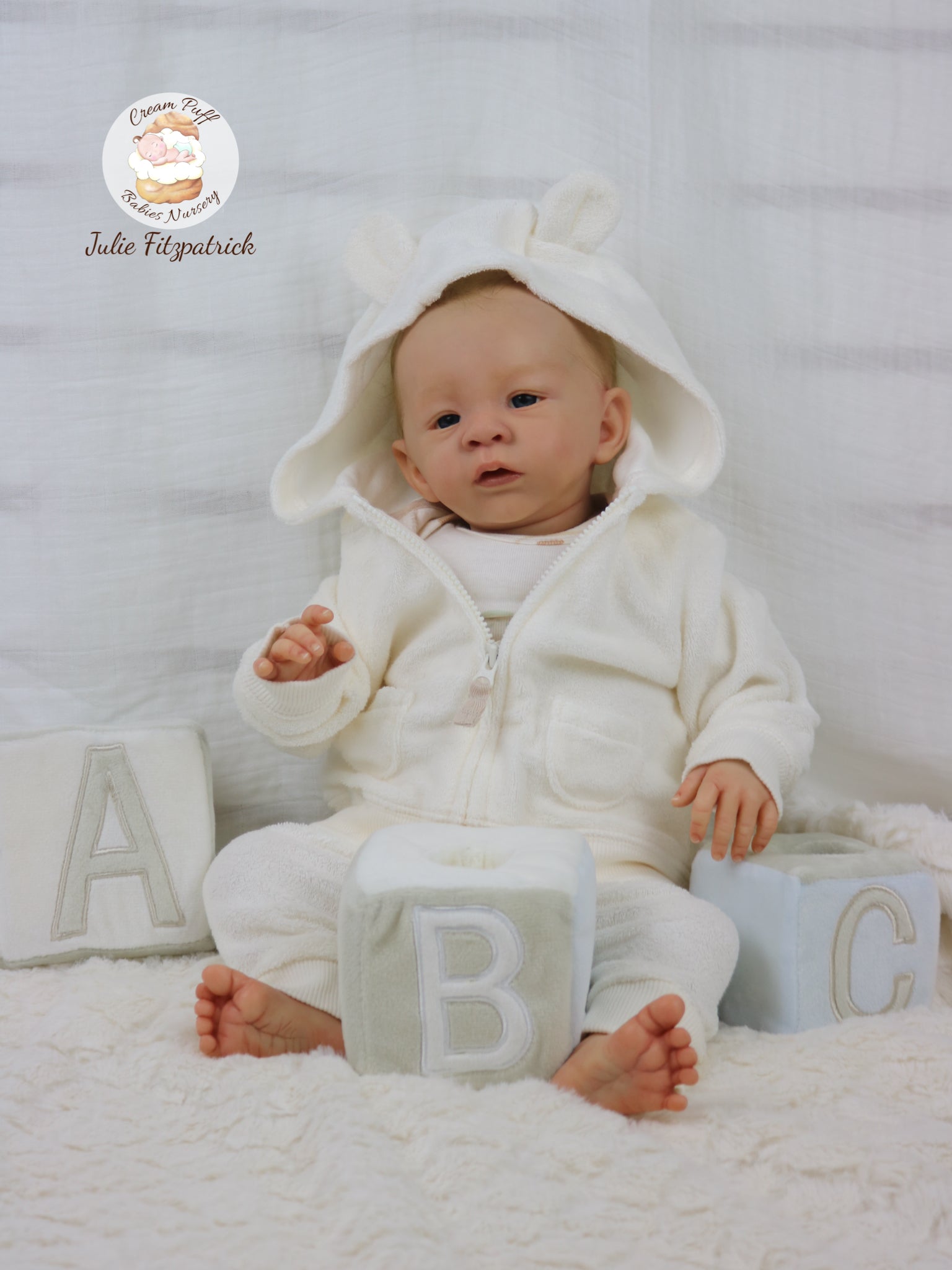 Lil Jude is a handcrafted, heirloom-quality collectible doll—not intended for play or young children. Perfect for collectors, reborn enthusiasts, and anyone who appreciates the warmth and comfort of these lifelike baby dolls. Props shown in photos are not included unless mentioned above. All sales are final due to the handmade nature of work that goes in to each baby. Every baby is packed with love and great care to ensure they arrive safely at their forever home.