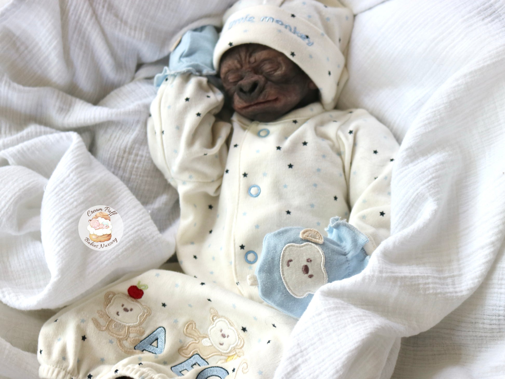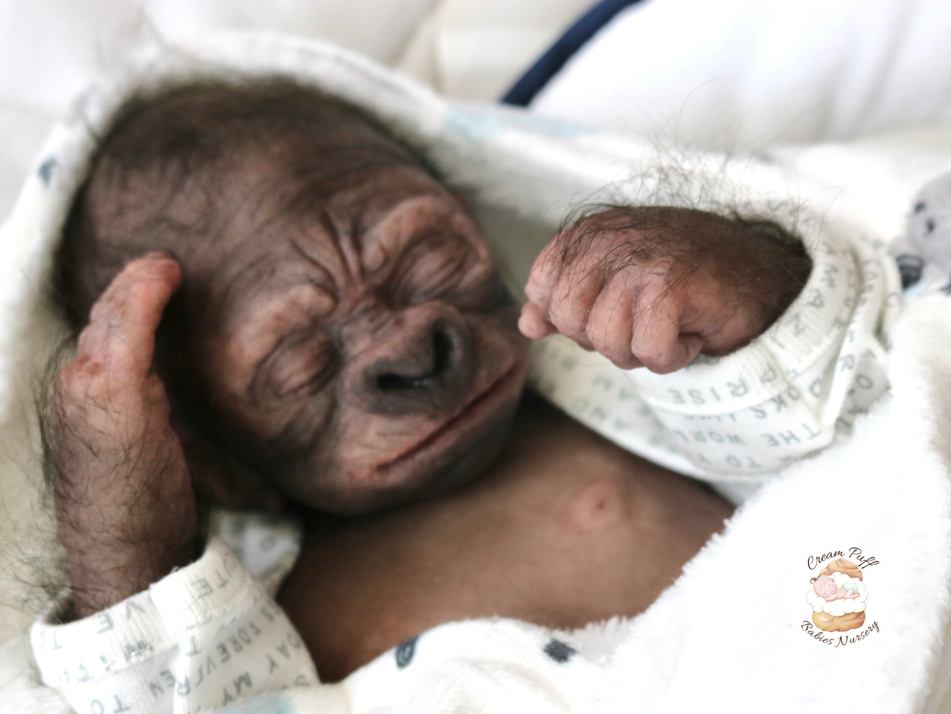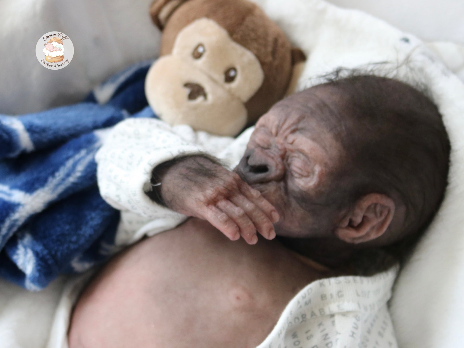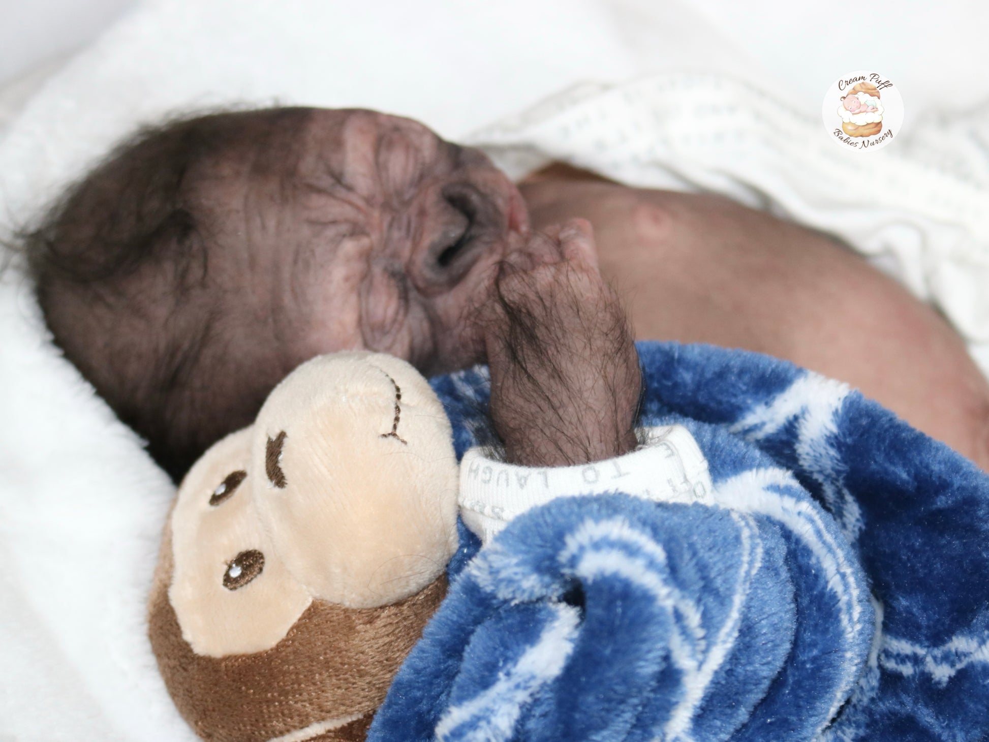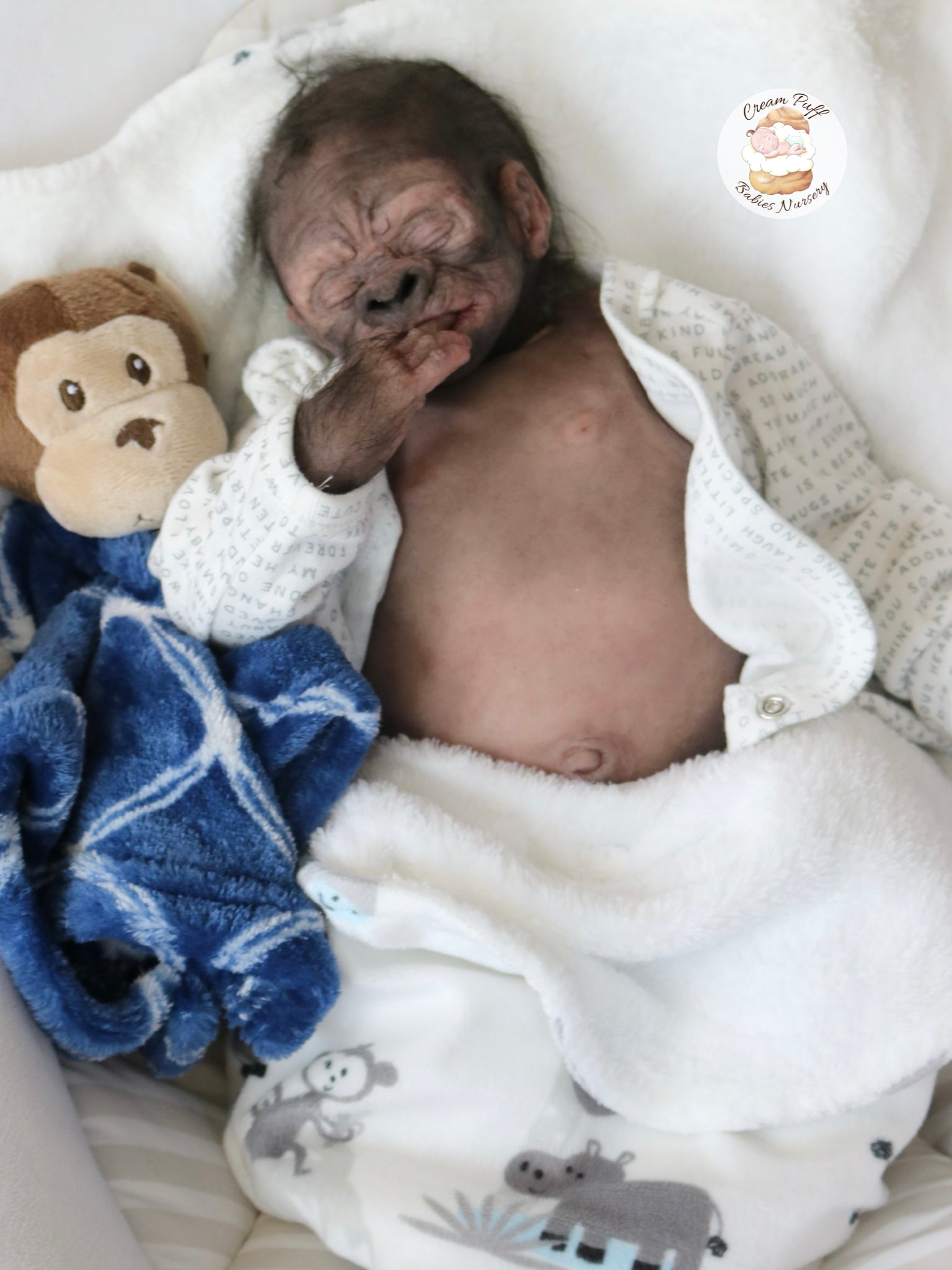 Deep in the heart of a magical jungle nursery, a tiny bundle of sweetness has just arrivedāand heās ready to be loved. Introducing Baby Gamar, a precious reborn partial silicone gorilla lovingly brought to life from theĀ Fahari sculpt by the talented Joanna LangeMann.Ā With so much love, care, and cuddly character his peaceful face, soft baby hair, and darling habit of sucking his tiny fingers, this sweet gorilla baby is full of lifelike charm and gentle innocence. From the moment you hold him, youāll feel the tug on your heartstringsāheās just waiting to swing his way into your world and never let go. š„°