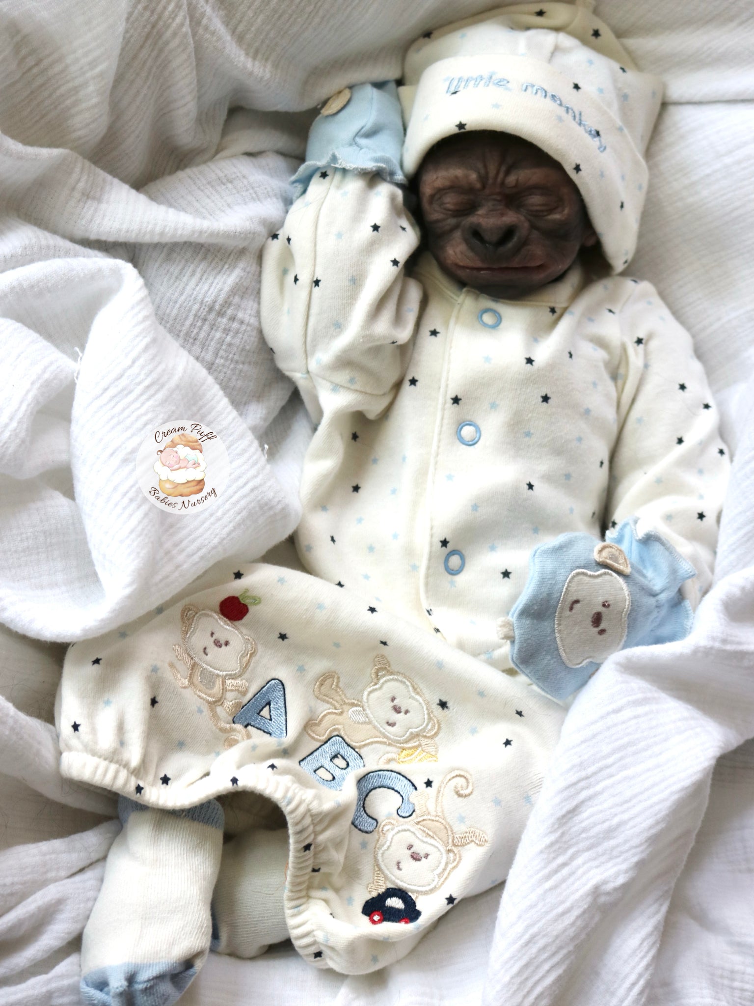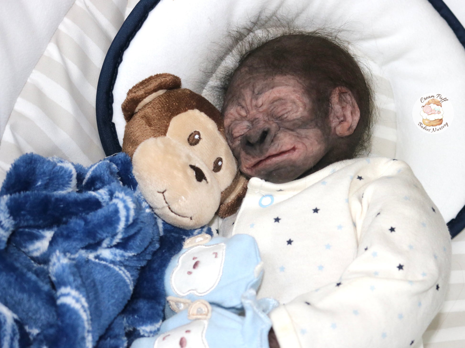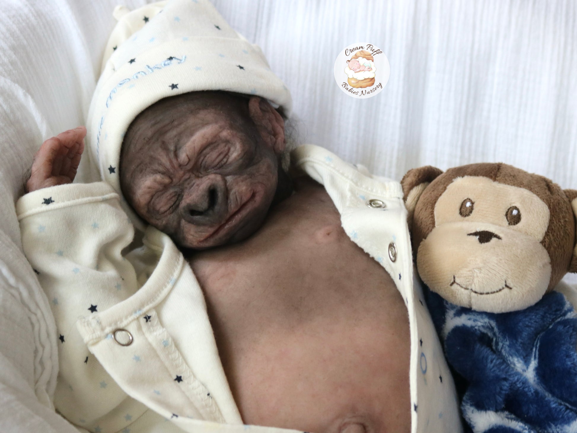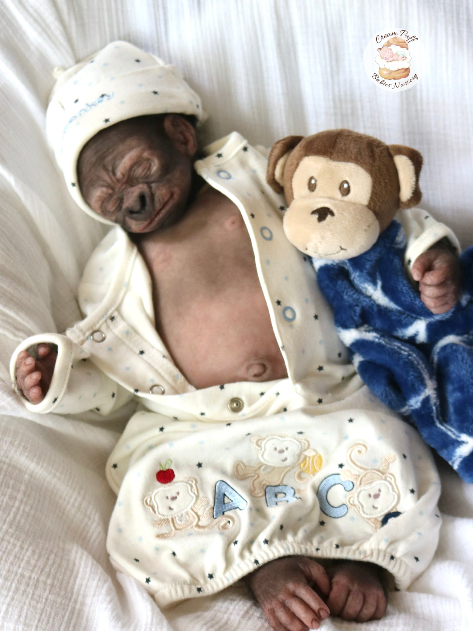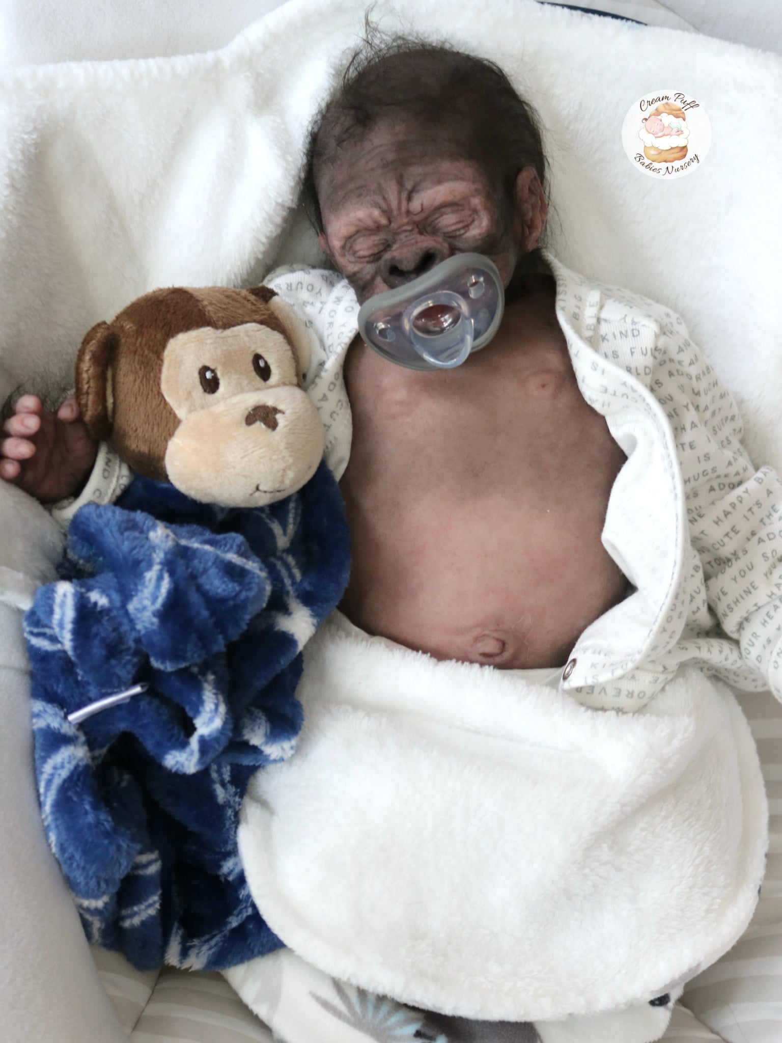 Deep in the heart of a magical jungle nursery, a tiny bundle of sweetness has just arrivedāand heās ready to be loved. Introducing Baby Gamar, a precious reborn partial silicone gorilla lovingly brought to life from theĀ Fahari sculpt by the talented Joanna LangeMann.Ā With so much love, care, and cuddly character his peaceful face, soft baby hair, and darling habit of sucking his tiny fingers, this sweet gorilla baby is full of lifelike charm and gentle innocence. From the moment you hold him, youāll feel the tug on your heartstringsāheās just waiting to swing his way into your world and never let go. š„°