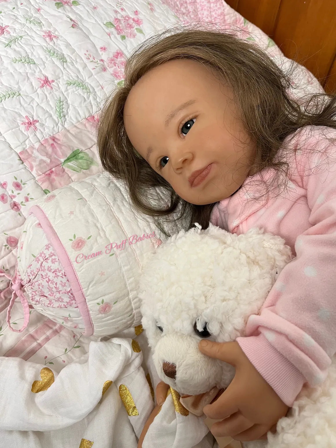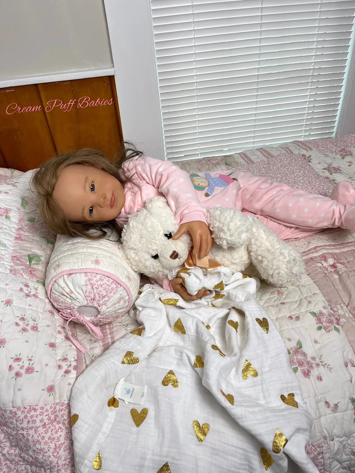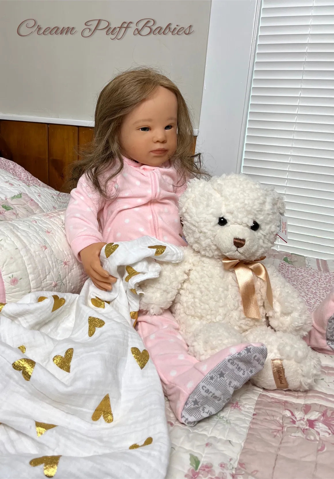 Our nursery is a smoke free environment and with delicate handling and extra special care, this toddler has been transformed into a treasured little OOAK "Cream Puff Babies Nursery" toddler girl.