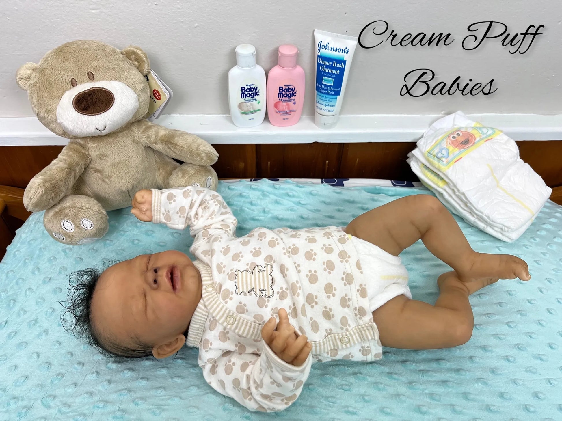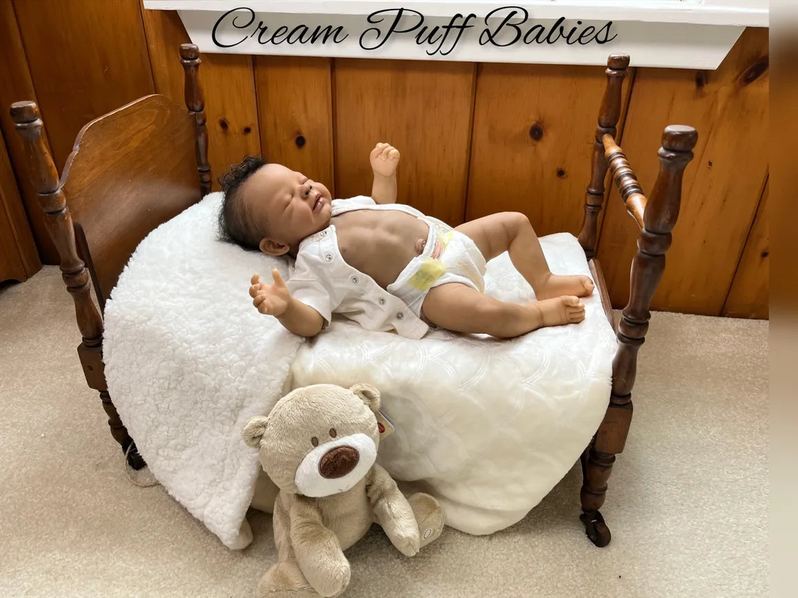 Our nursery is a smoke free environment and with delicate handling and extra special care, this baby has been transformed into a treasured little OOAK "Cream Puff Babies Nursery" baby boy