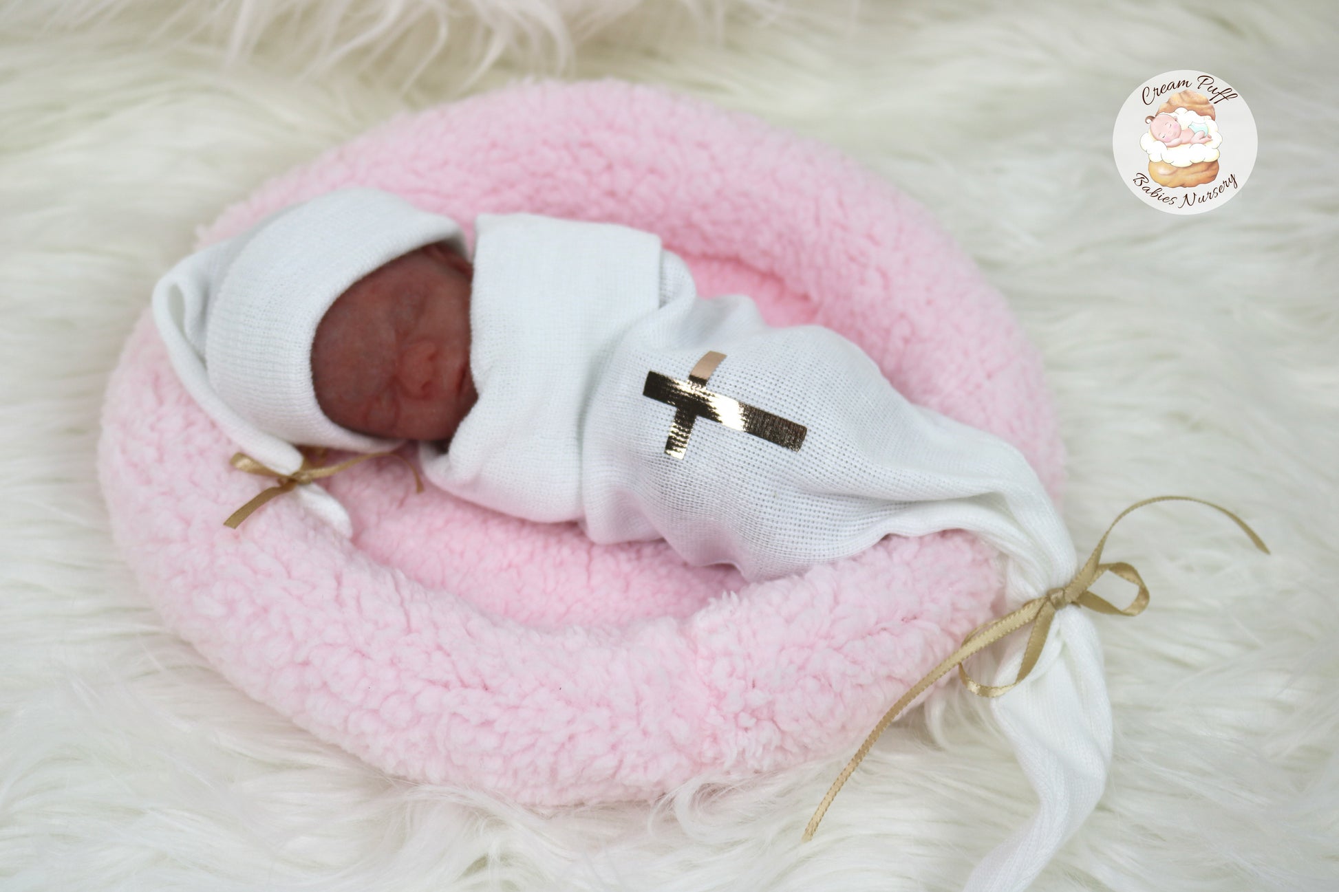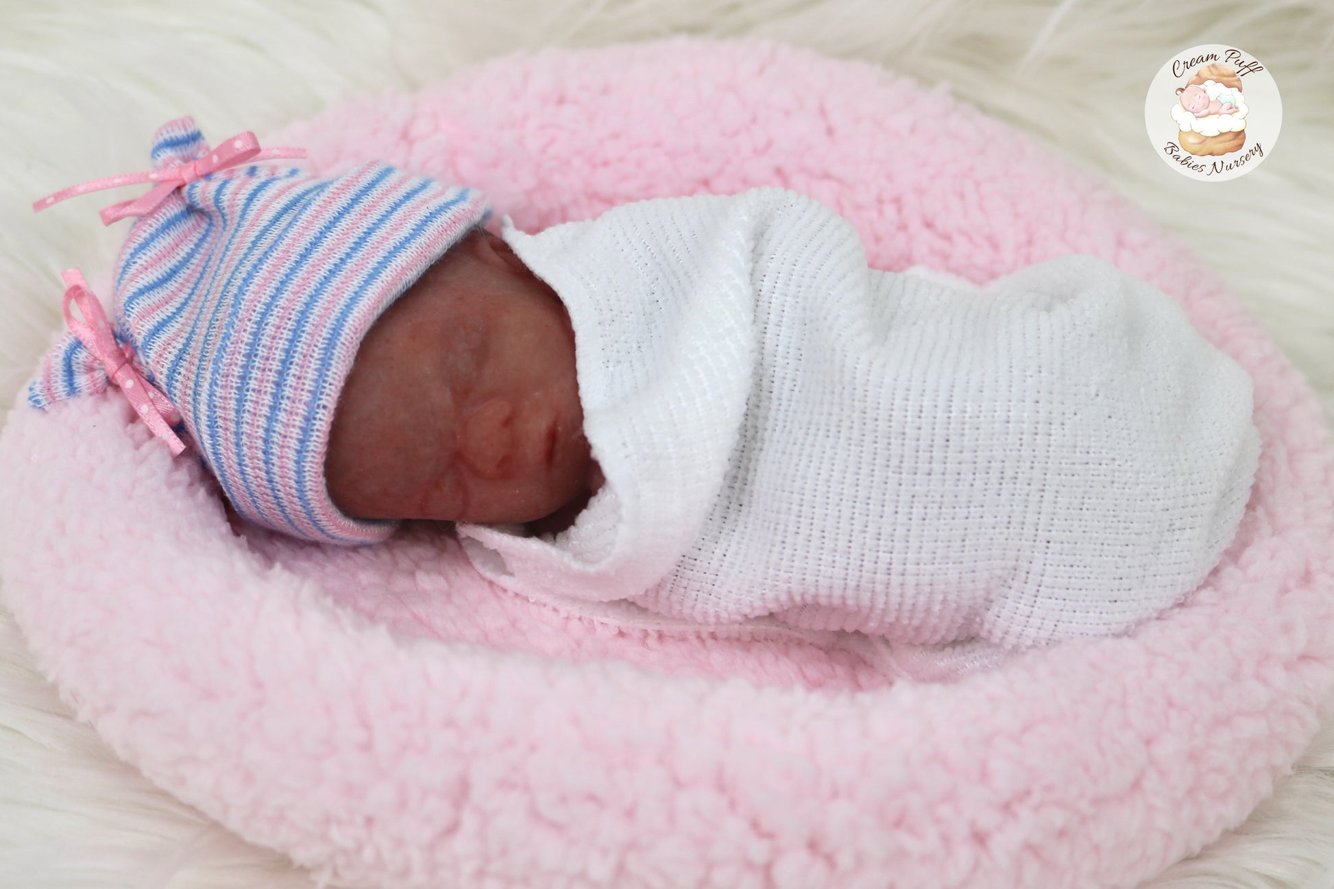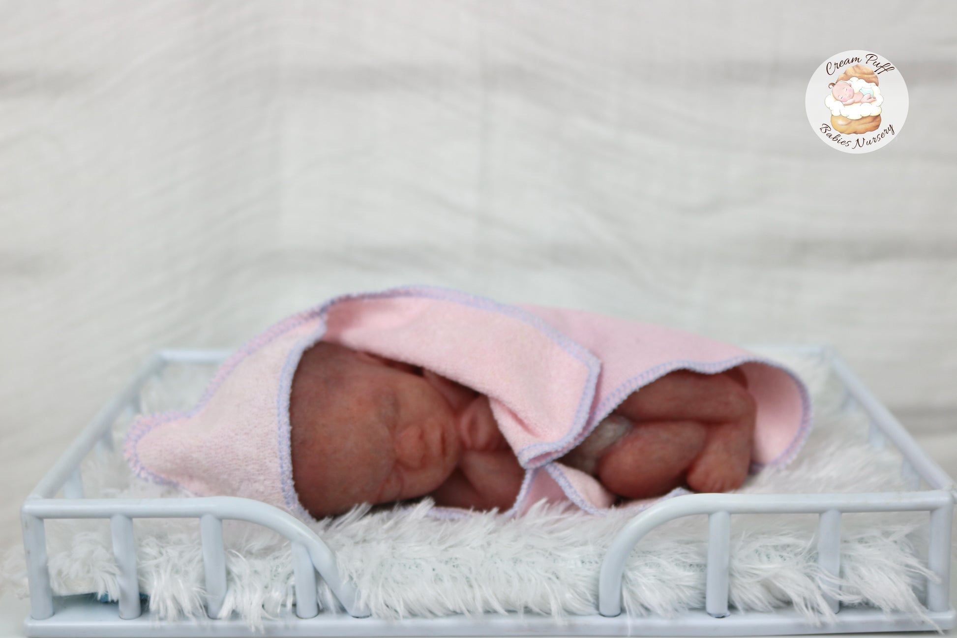 The sculpt to start out with was a blank neutral pale skin tone silicone and was put through our reborn process to enhance her realism and lifelike, premature look.