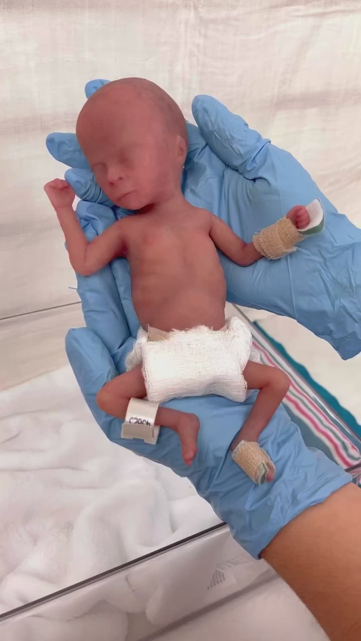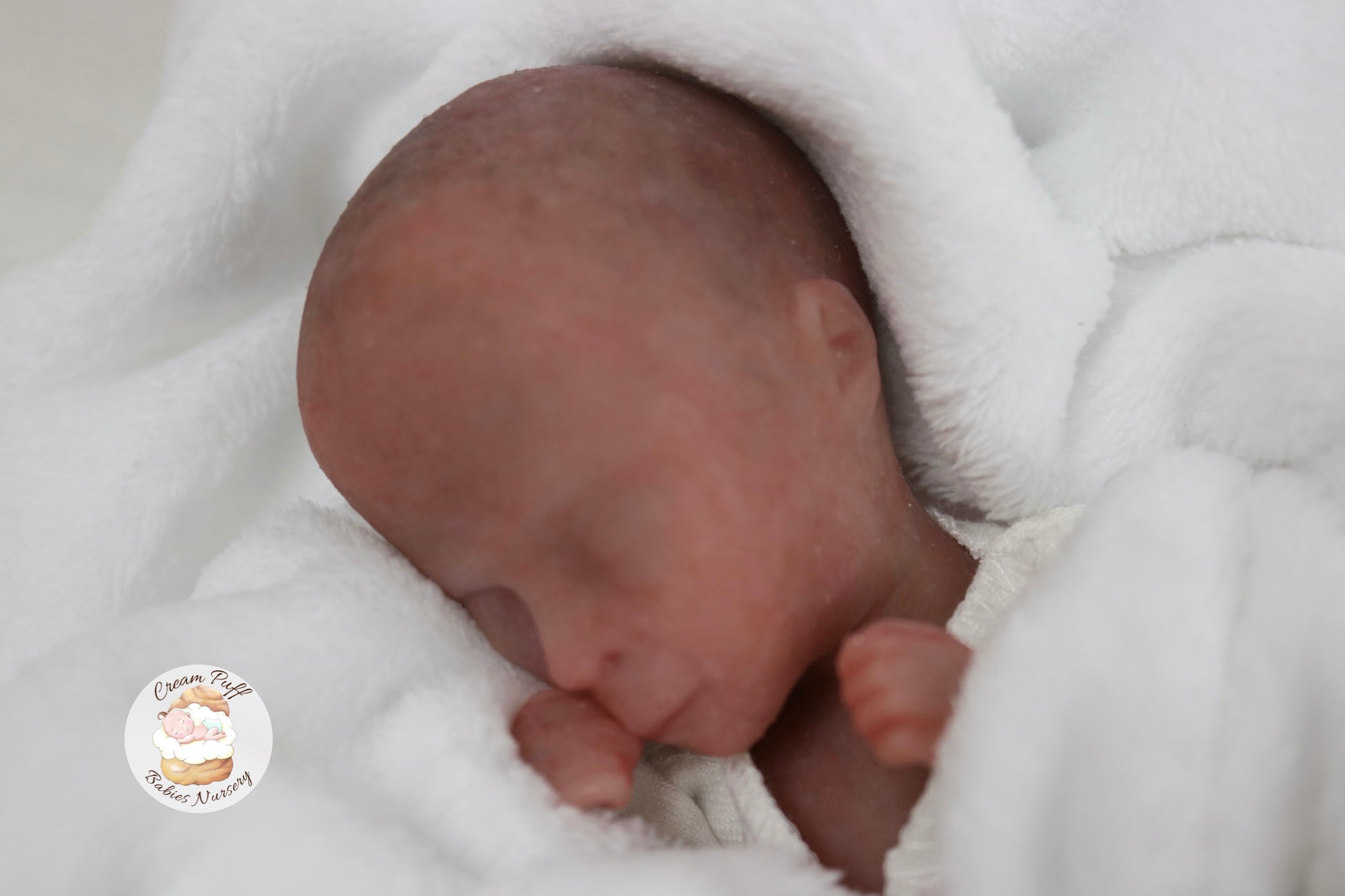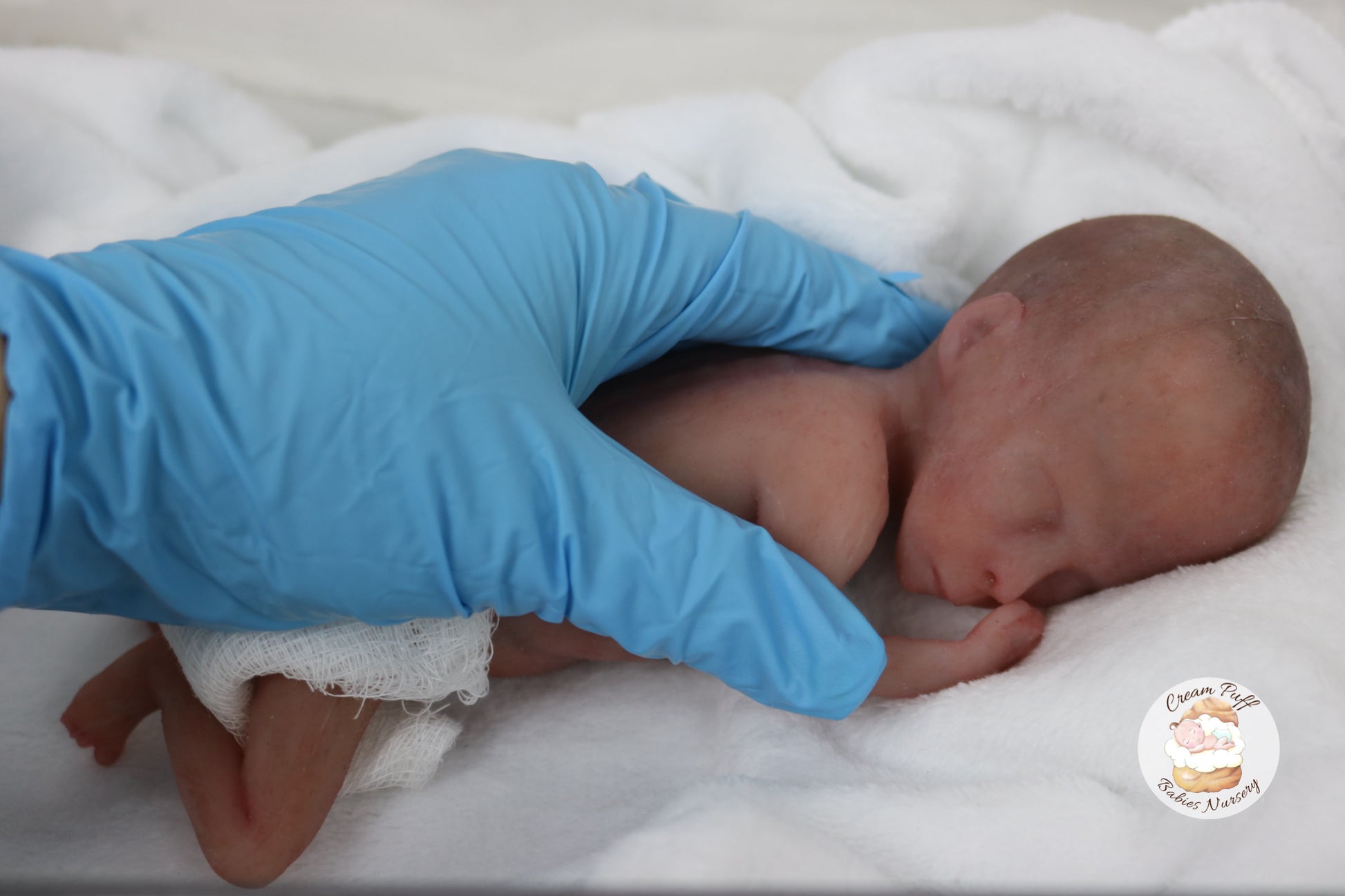 Allow me to introduce you to Saybie. She is such a tiny, delicate girl, as you can probably tell from the photos she fits right in the palm of your hand. 🥰 She is only 8.25 inches long with bent legs! Saybie is the realistic size a baby would be at 17-18 weeks gestation. She is made out of silicone which allows her body to feel weighted and move like a baby of her size would. I created Saybie in mind as a memorial baby doll for the mom out there who has experienced a miscarriage or a loss of her child at premature birth. I wanted to make Saybie as life like as possible and used various painting techniques to add layers of depth within the skin tone to highlight all of her premature features. Saybie is ready for her new home and she wants to be lovingly cradled in your hands. She loves to lay on your chest to listen to your soothing heart beat.❤️ Saybie is an absolute sweetheart. She has such a precious loving effect, that she just might bring tears to your eyes when you hold her 🥹 To learn more about the specific artistic details of her and the items she will come with, continue to read below.