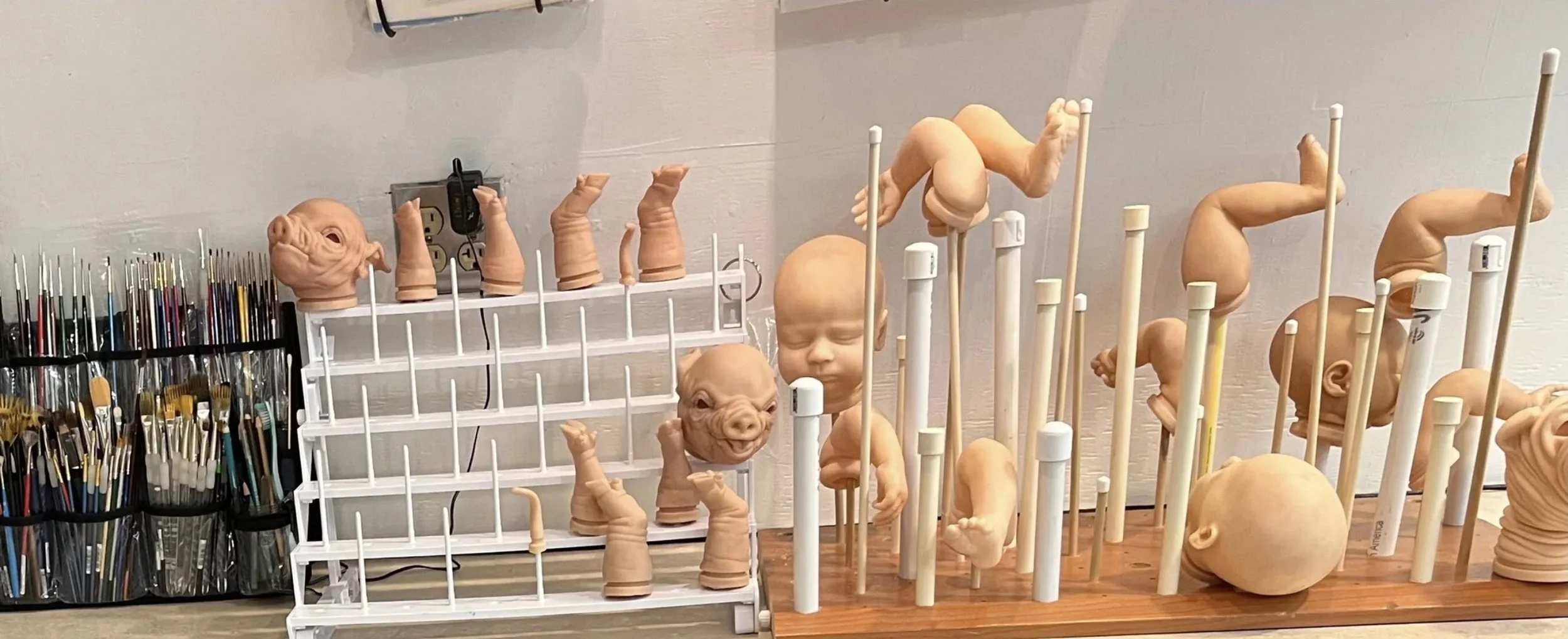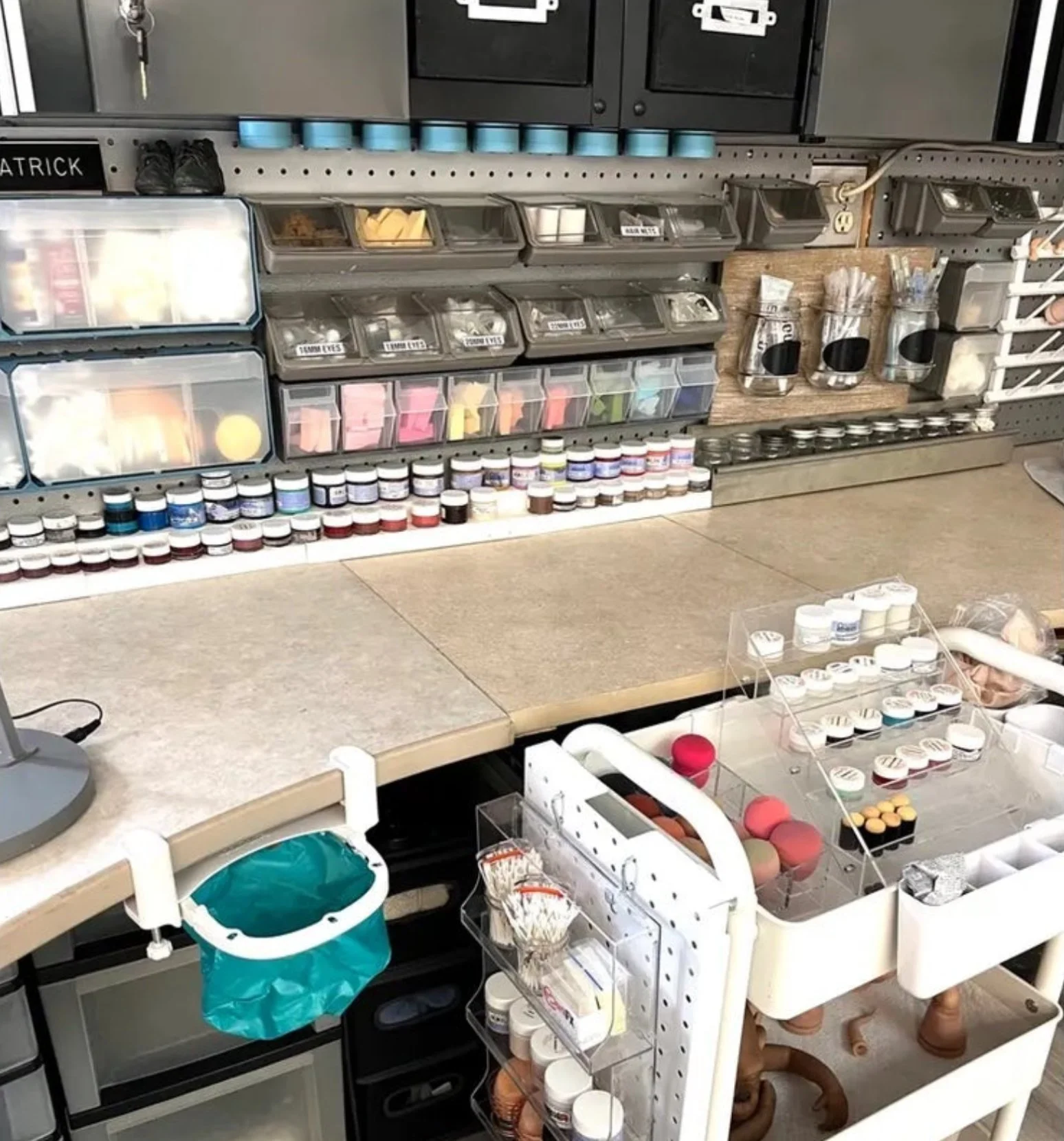 One of our favorite places to be is in our studio 🤩🎨 We know the importance of creating in a clean, well organized, professional studio to ensure we produce the finest quality reborn baby dolls. Each brush, sponge, tool, and paint is neatly placed in a particular spot so our reborn process goes smoothly and is handled with care in each & every step 🖌️ ✨
